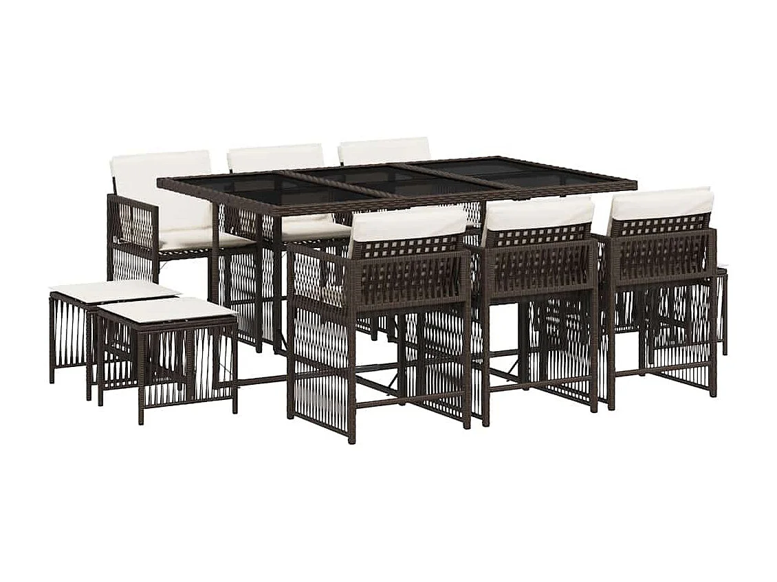 Zenn Set comedor de jardín 11 pzas y cojines ratán sintético marrón