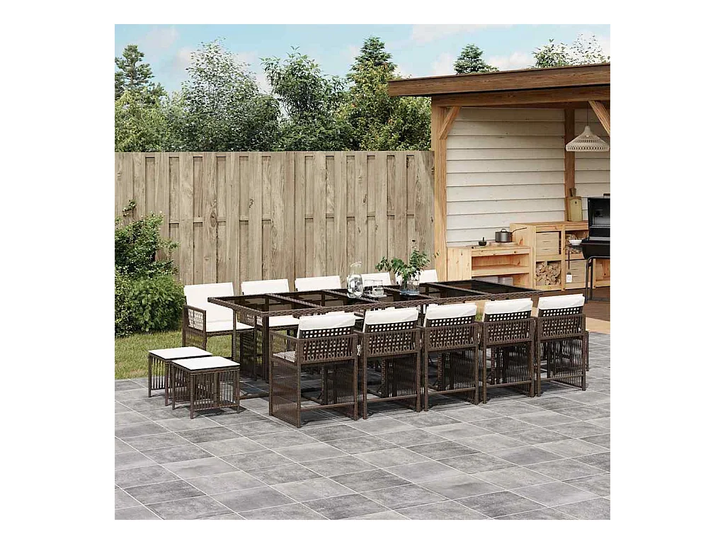 Enfield Set comedor de jardín y cojines 15 pzas ratán sintético marrón