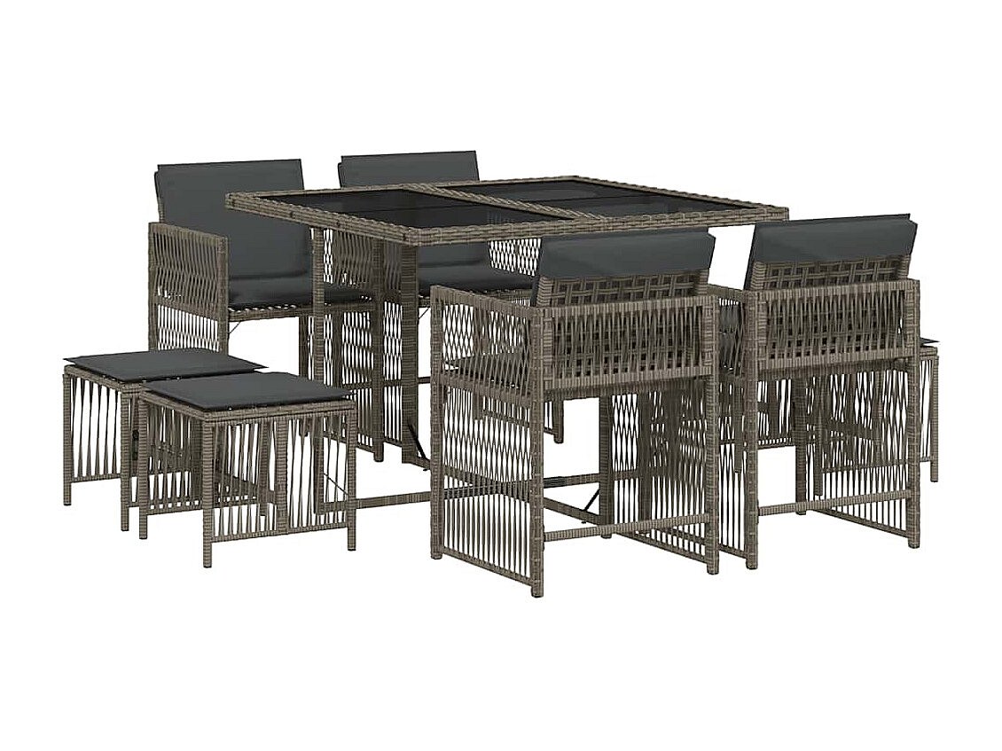 Xeli Set comedor jardín 9 pzas y cojines ratán sintético gris
