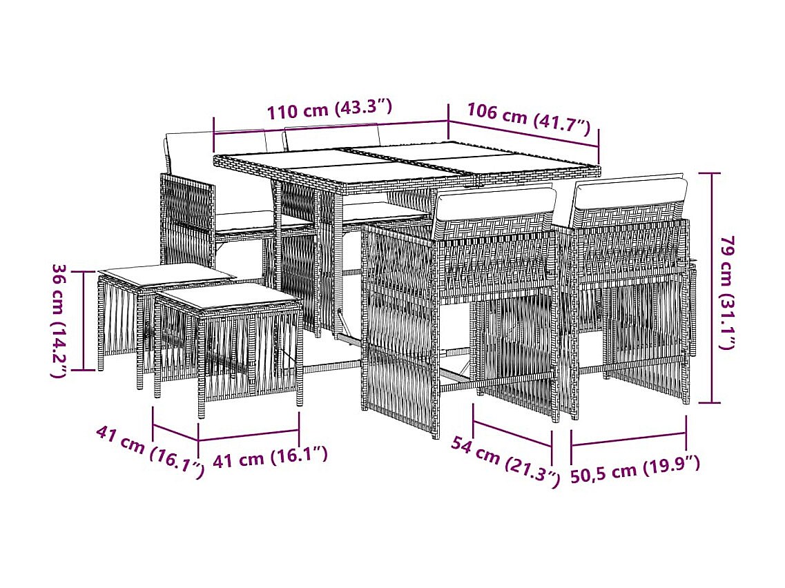 Laura Lucía Set comedor jardín 9 pzas y cojines ratán sintético gris