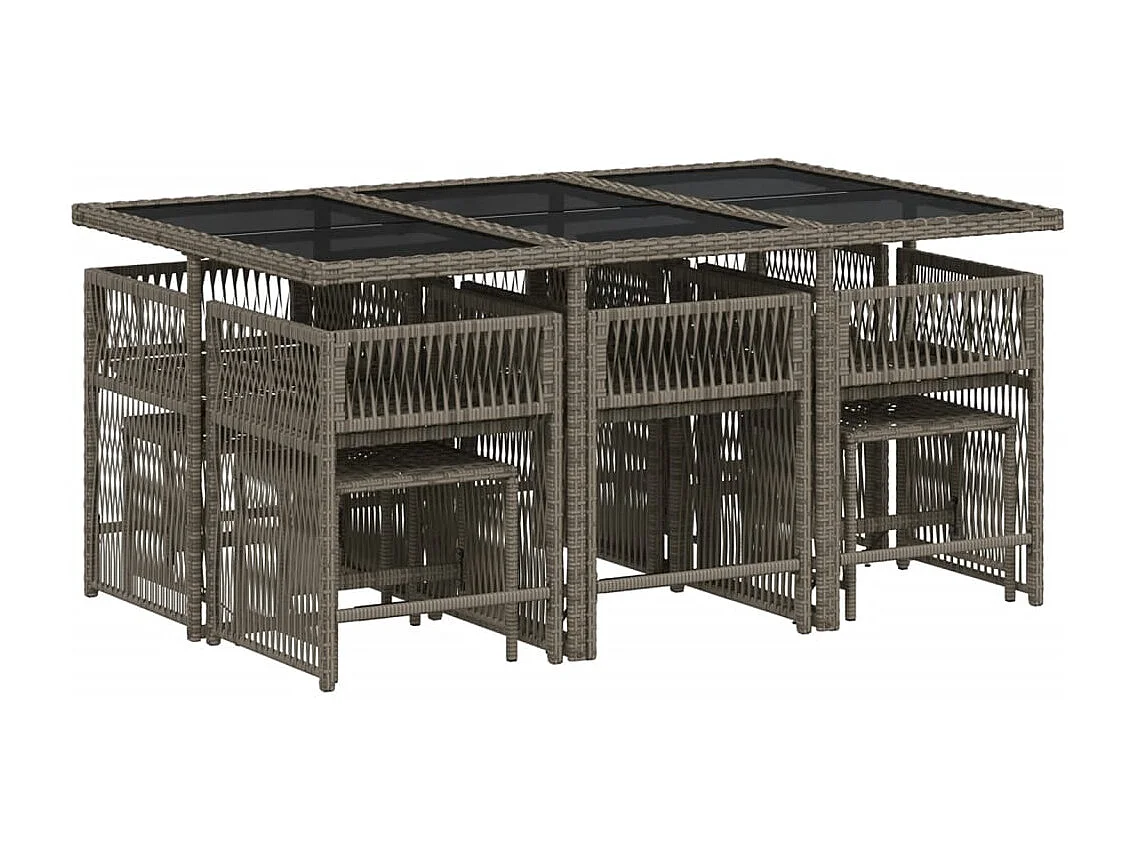 Jesse Set comedor jardín 7 pzas y cojines ratán sintético gris