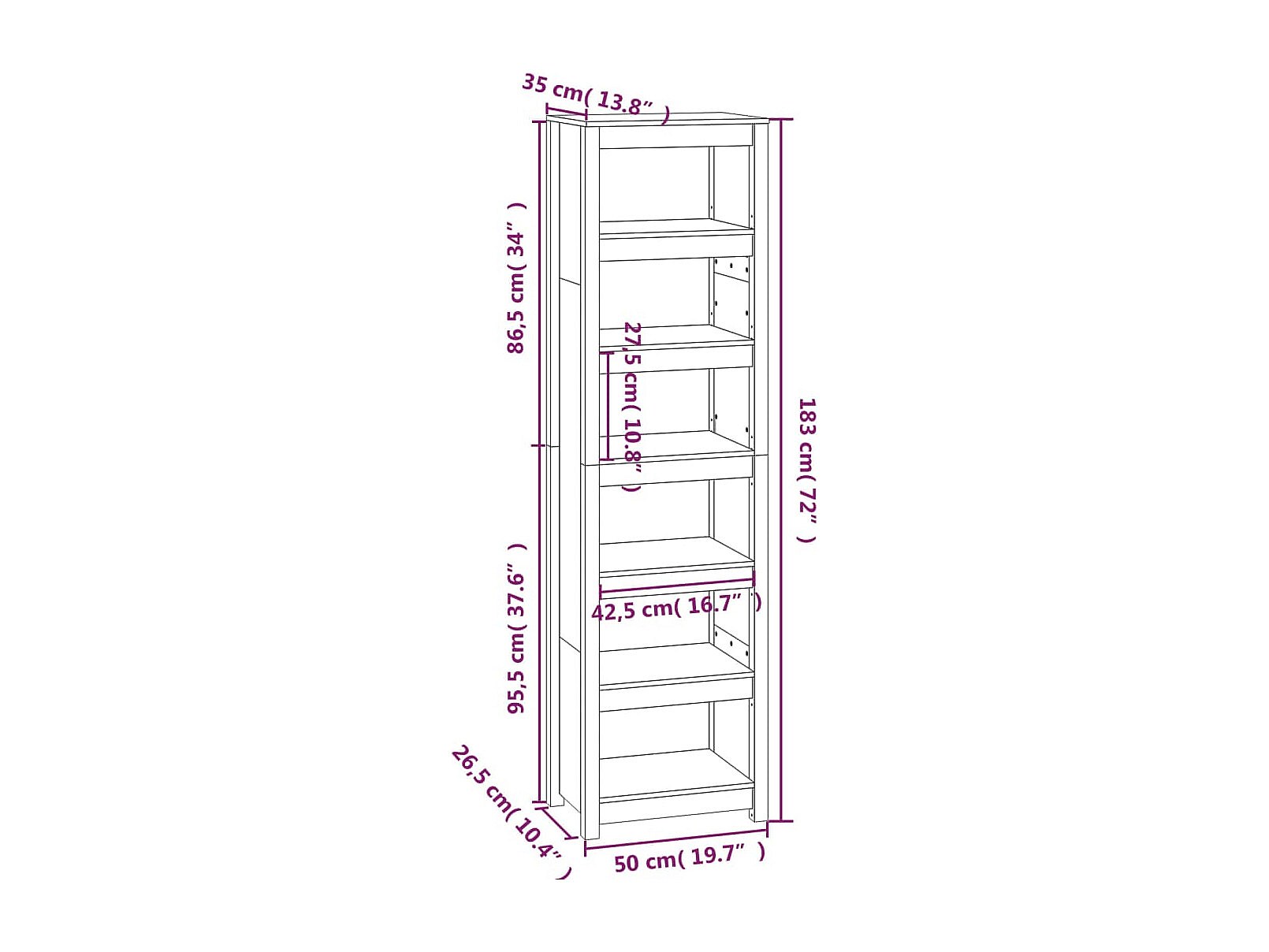 Laurens Estantería madera maciza de pino 50x35x183 cm