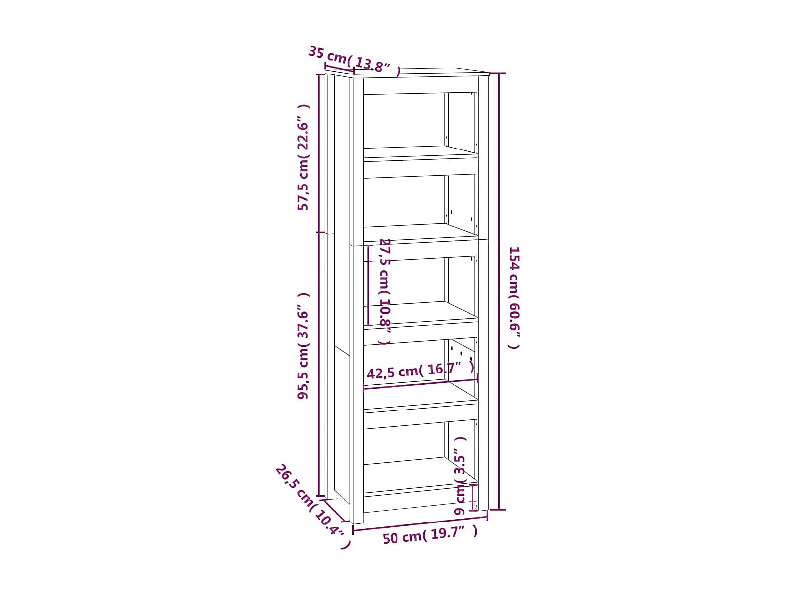• Dimensiones: 50 x 35 x 154 cm (ancho x profundo x alto)