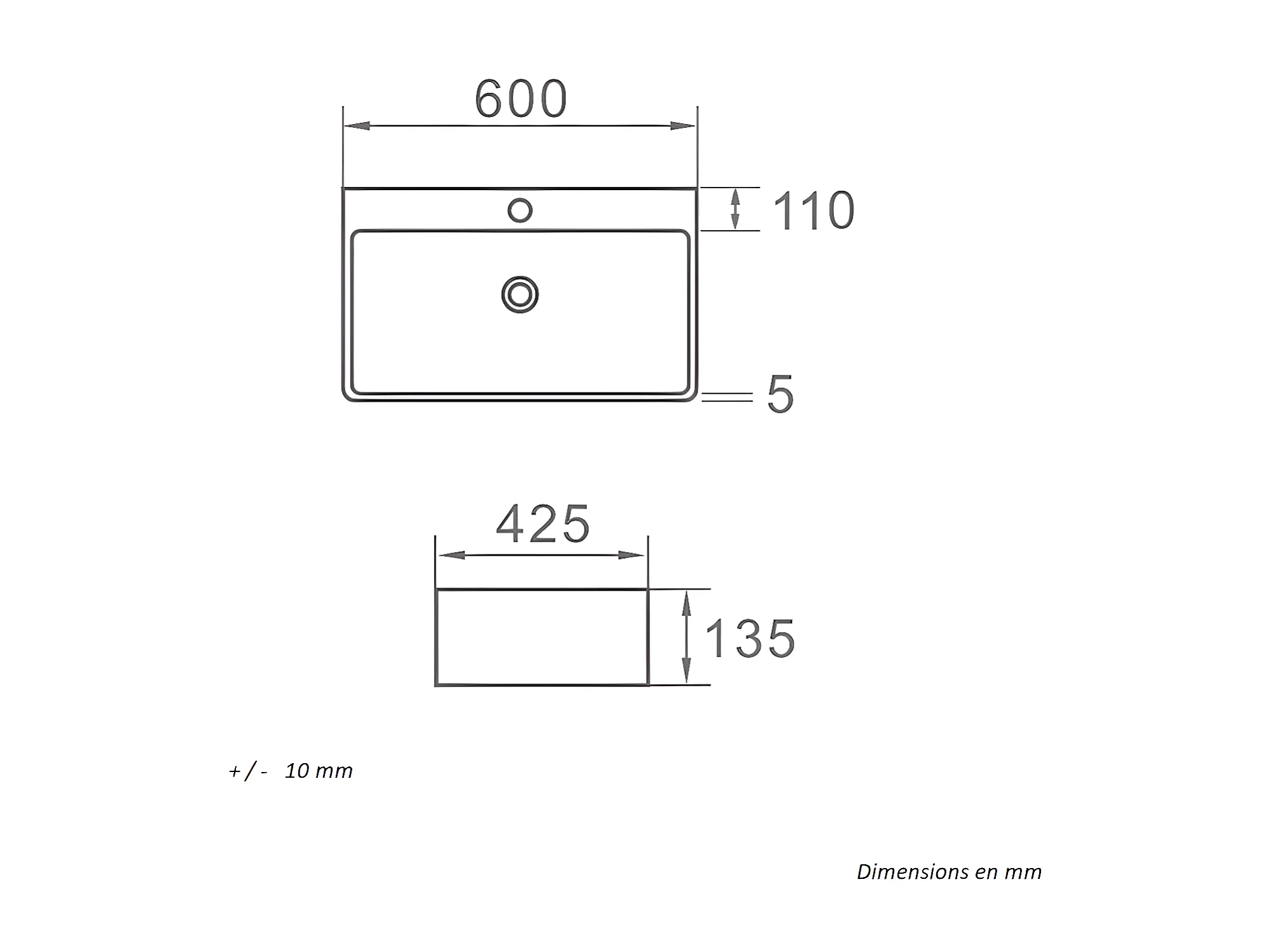 Lavabo blanco brillante sobre encimera cerámico ESTERO 60 x 42,5 cm 60 x 42.5 cm