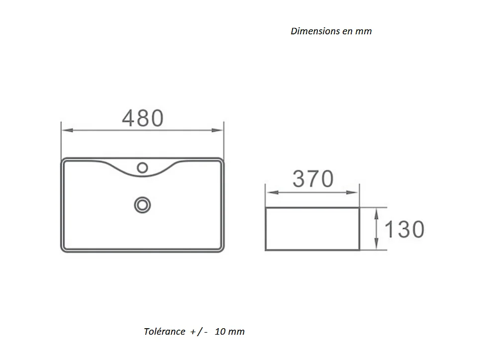 Lavabo sobre encimera rectangular en cerámica CATANIA blanco 50 x 40 cm Blanco brillante