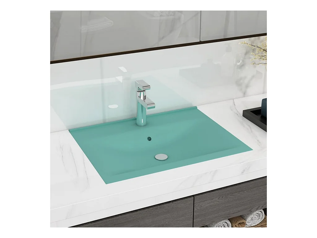 Lavabo con orificio para grifería Verde claro mate 60x46 cm Cerámica