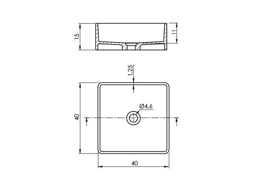 Lavabo cuadrado para encimera en Sanydur ARTANA 40 x 40 cm