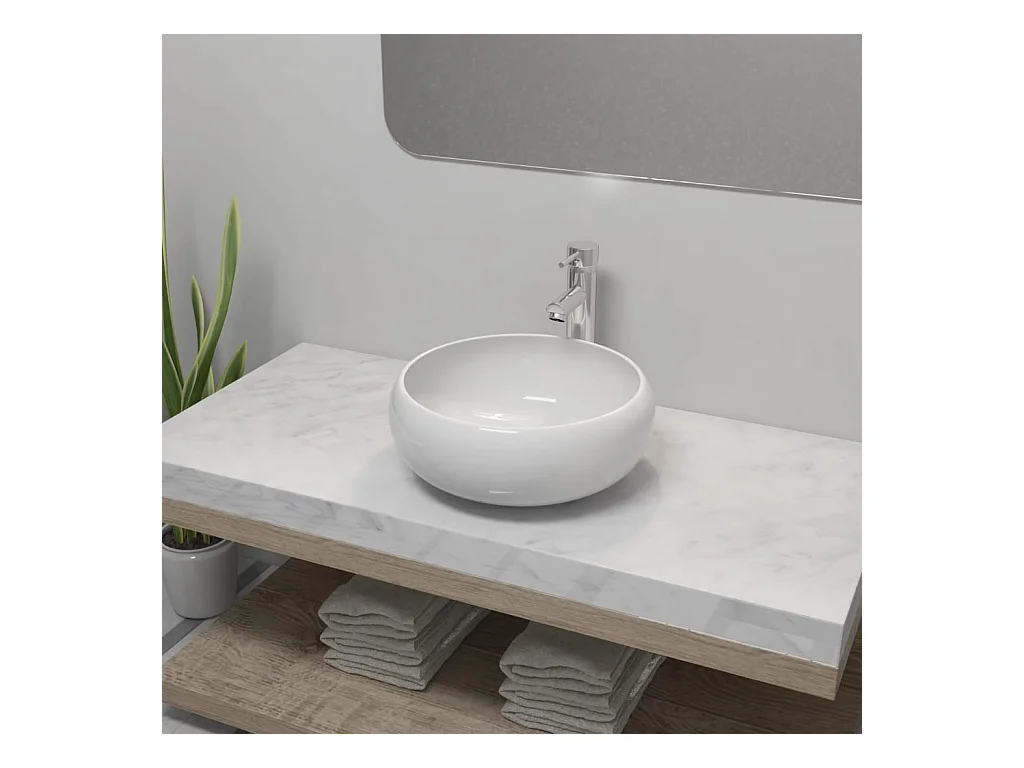 Lavabo de baño redondo con grifo mezclador cerámica blanco ES66267