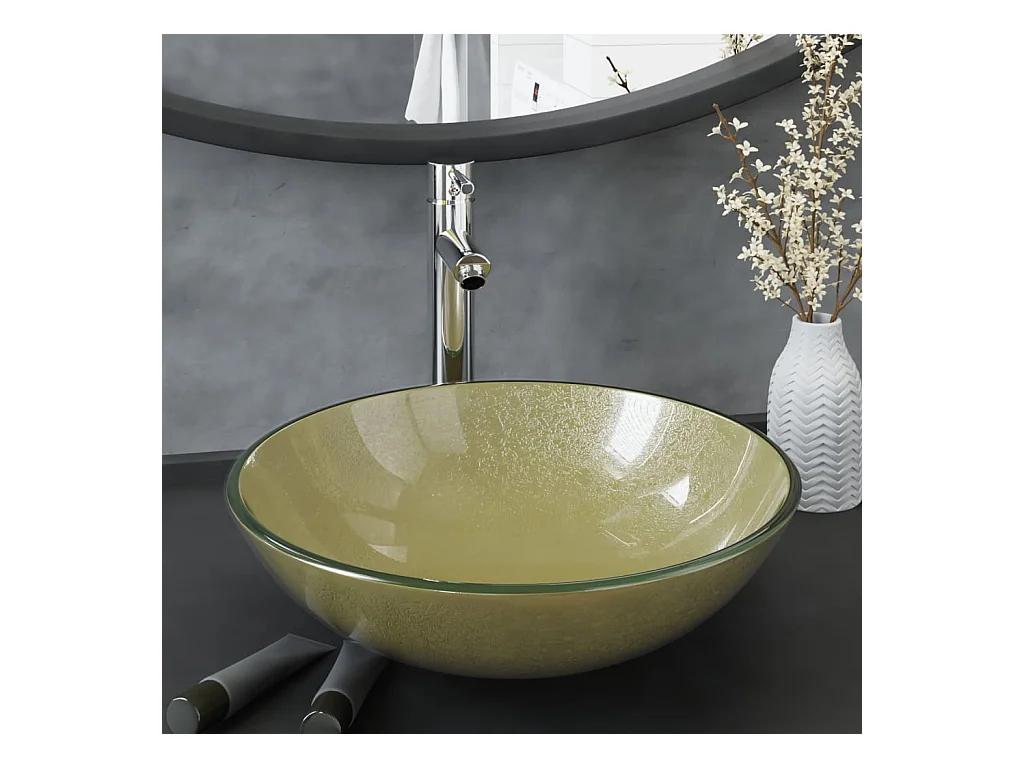 Lavabo de baño con grifo y desagüe pulsador Cristal templado