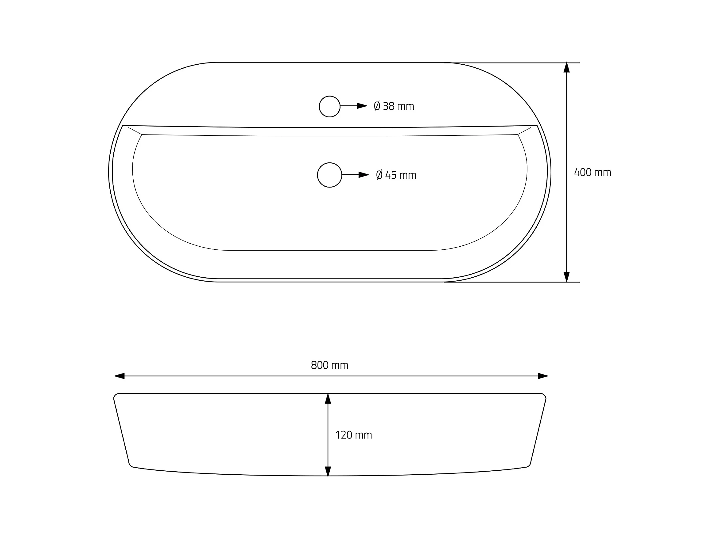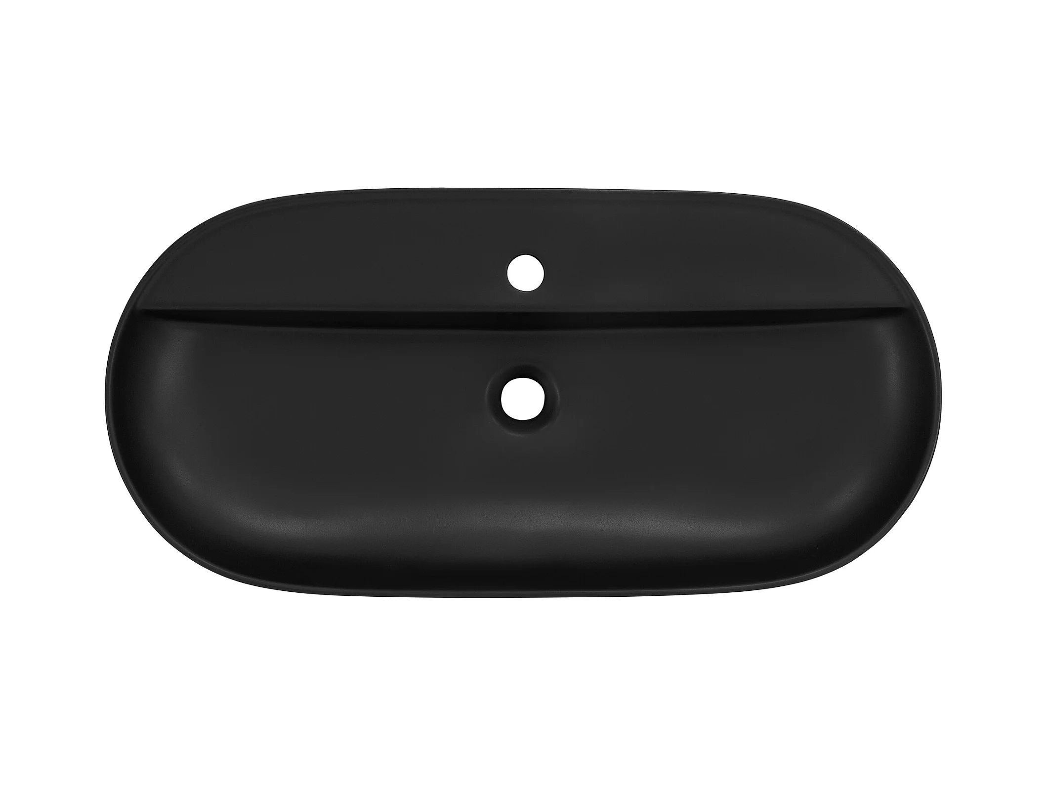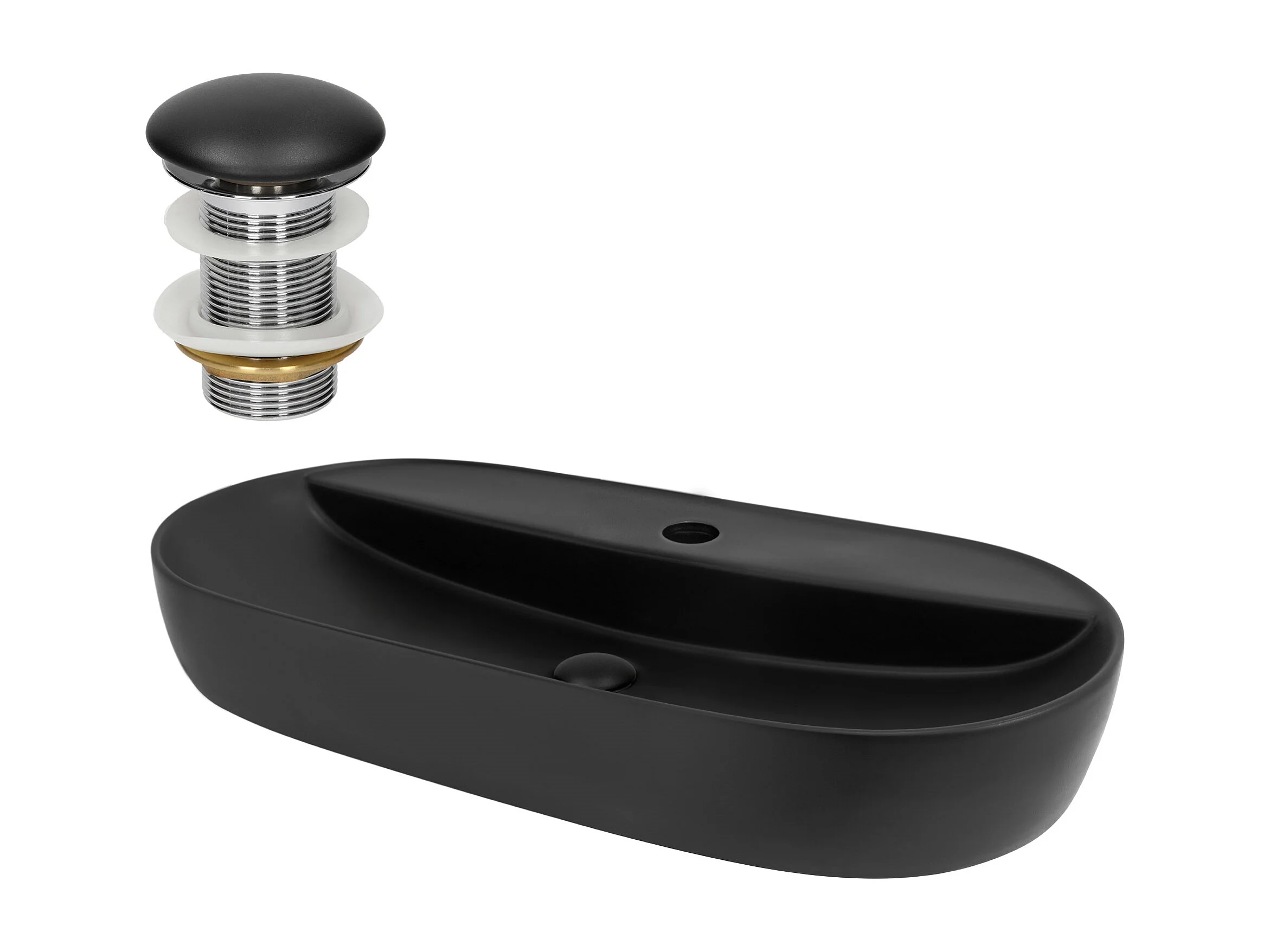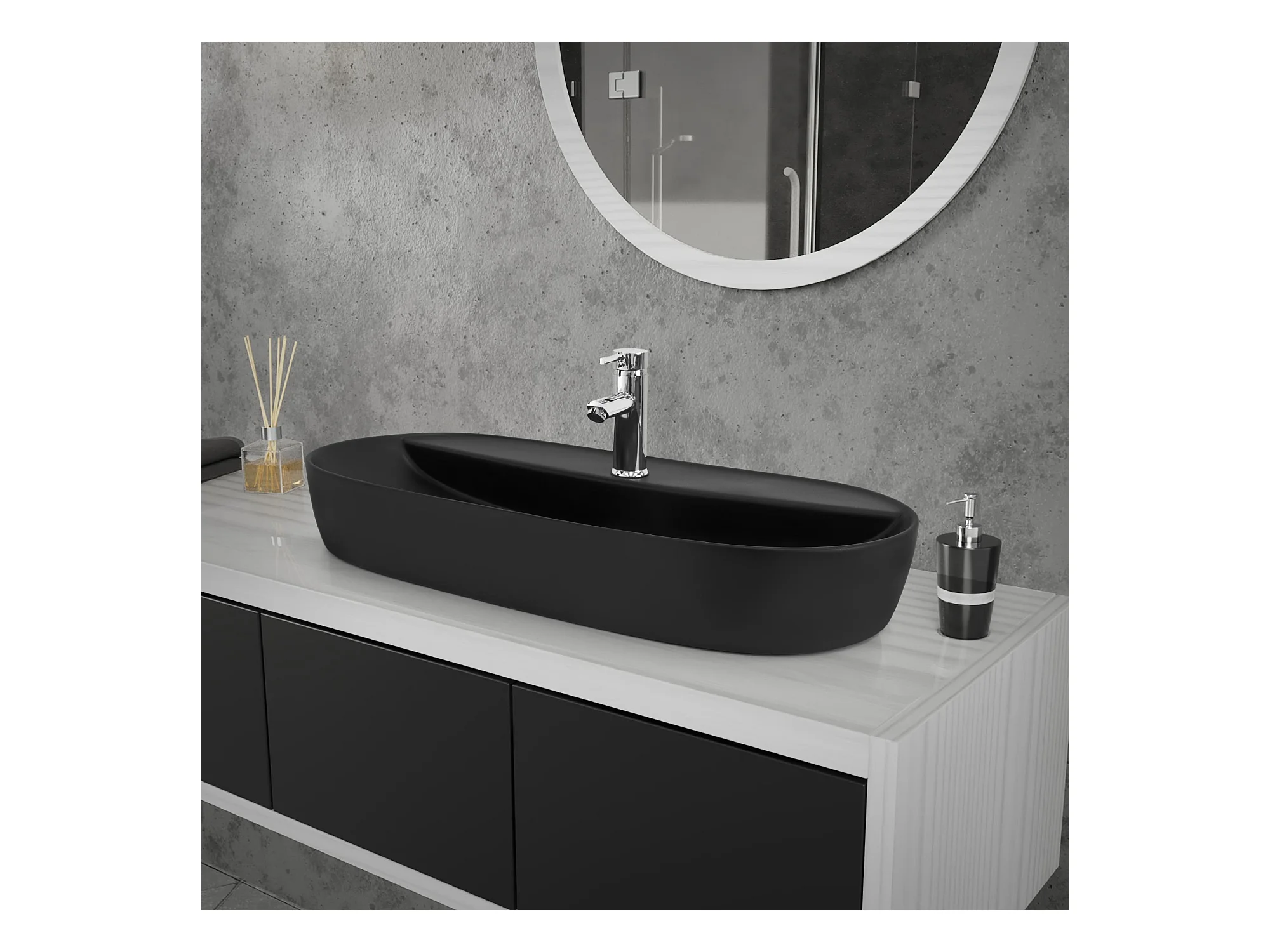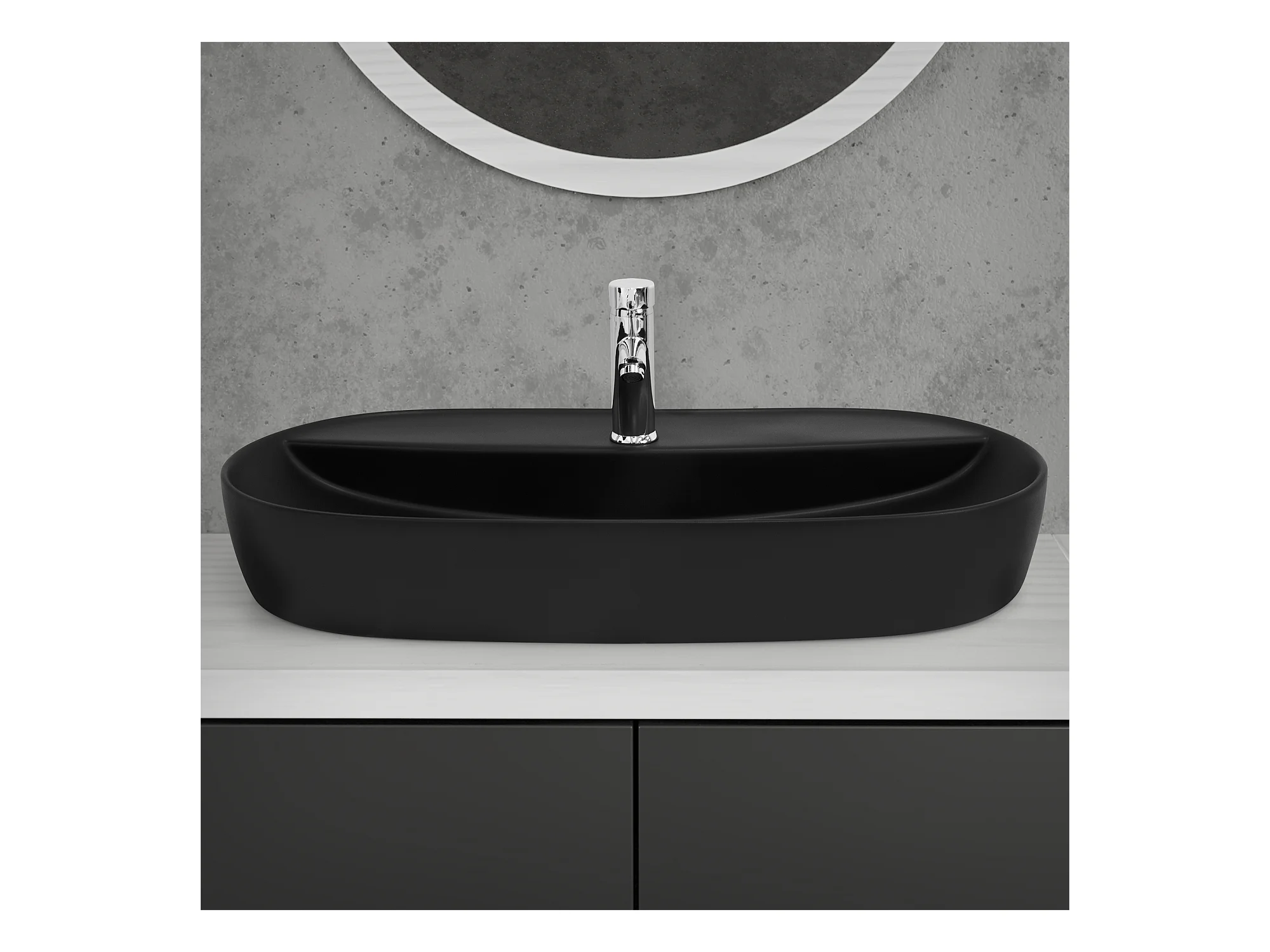Lavabo ovalado negro cerámico con desagüe a juego 800 x 400 x 120 mm para baño