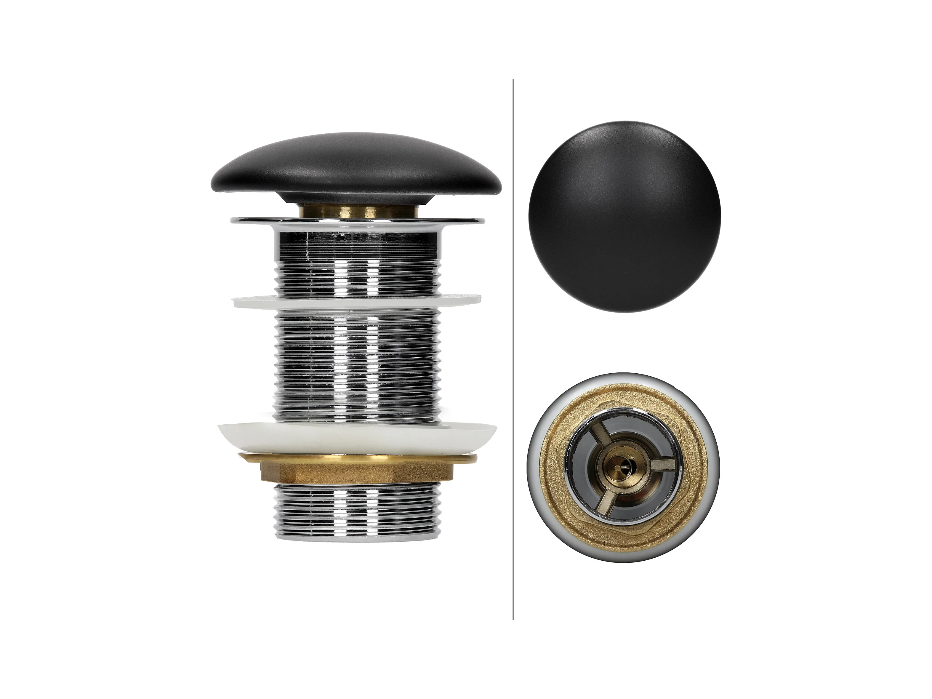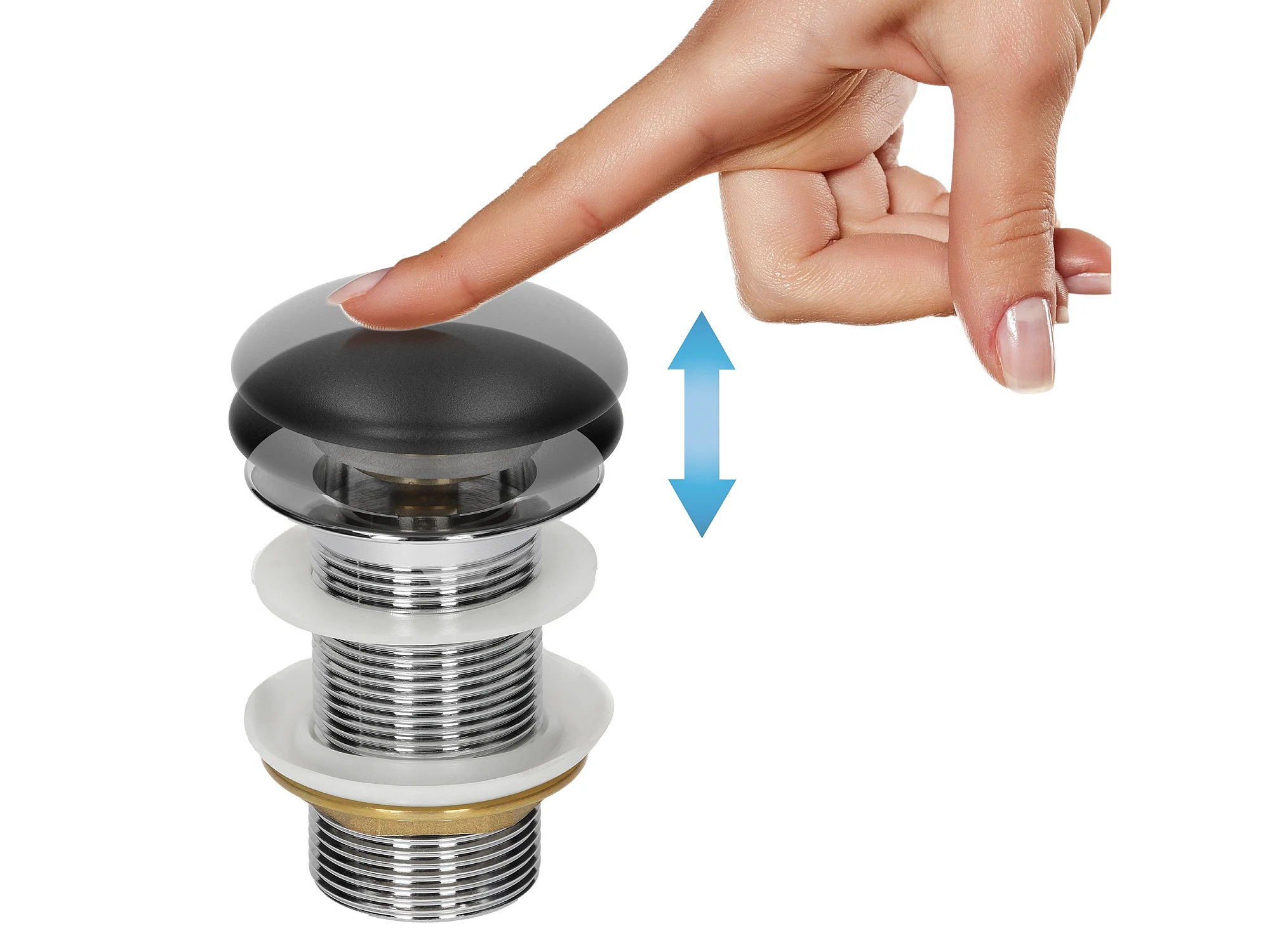 Grifo Baño, Negro, con Espumador Desmontable, Agua Fría/Caliente+Bonde Lavabo Desagüe Pop-up con Desbordamiento Automático Universal