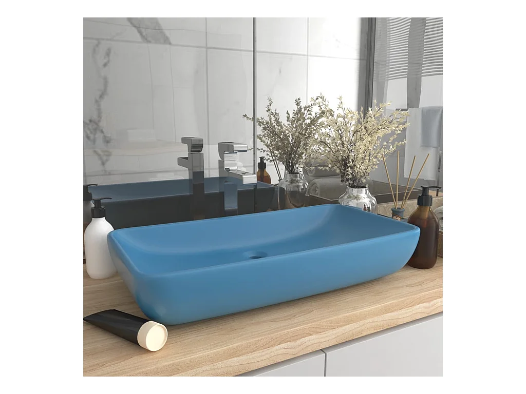 Lavabo de lujo de cerámica rectangular azul claro mate 71x38 cm ES66440