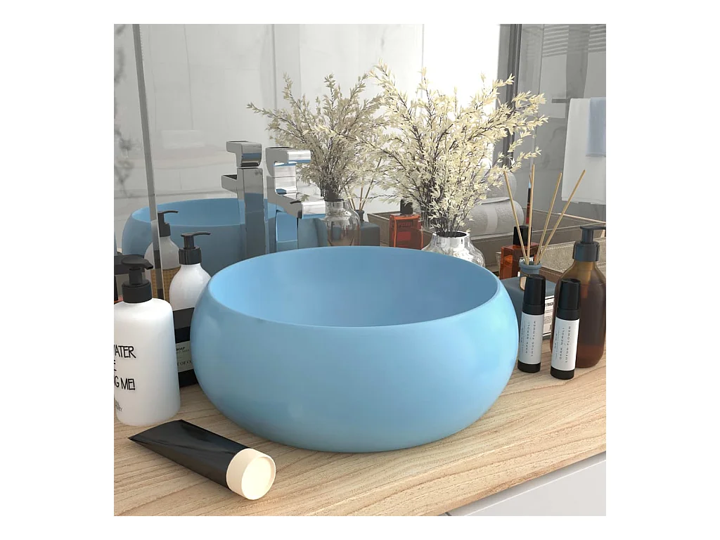 Lavabo de lujo redondo cerámica azul claro mate 40x15 cm ES66614