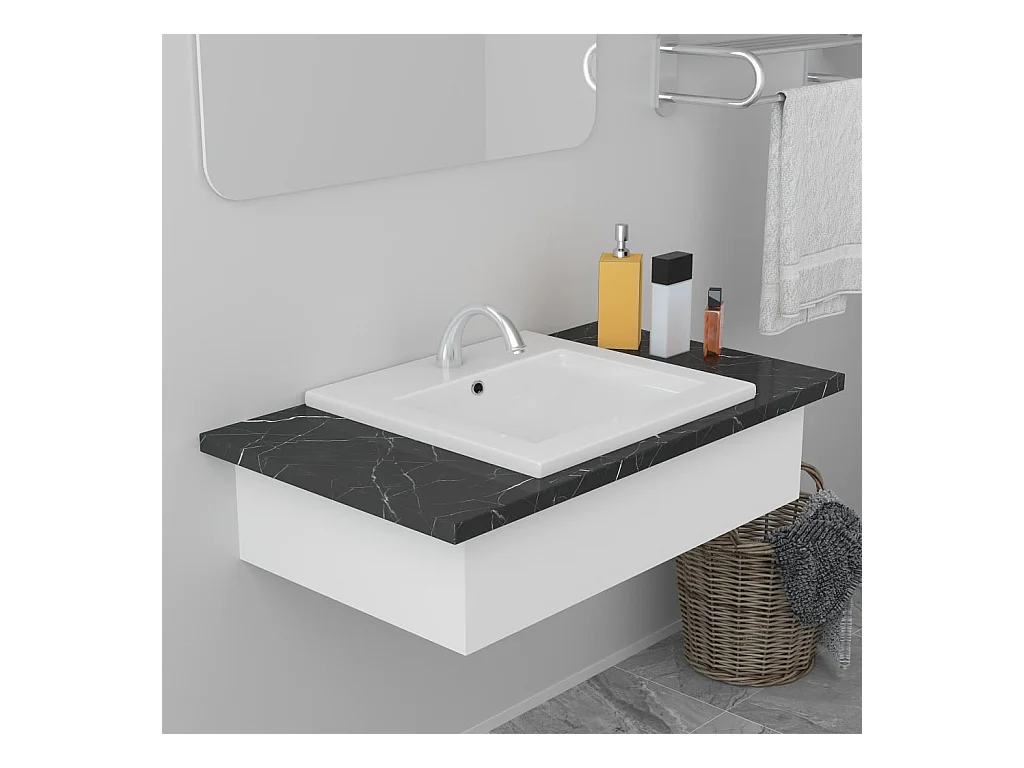 Lavabo empotrado con grifo cerámica blanco 61x39x18 cm ES66465