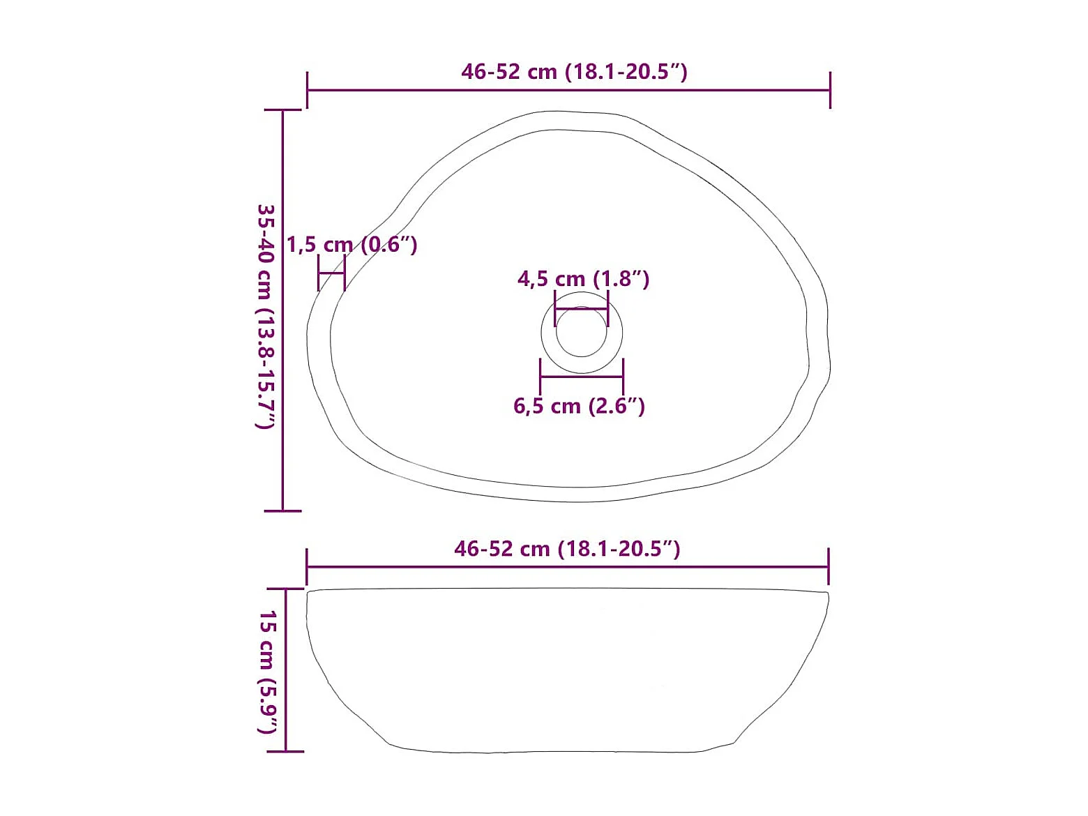 Lavabo gris claro (46-52) x (35-40) x 15 cm Piedra de río