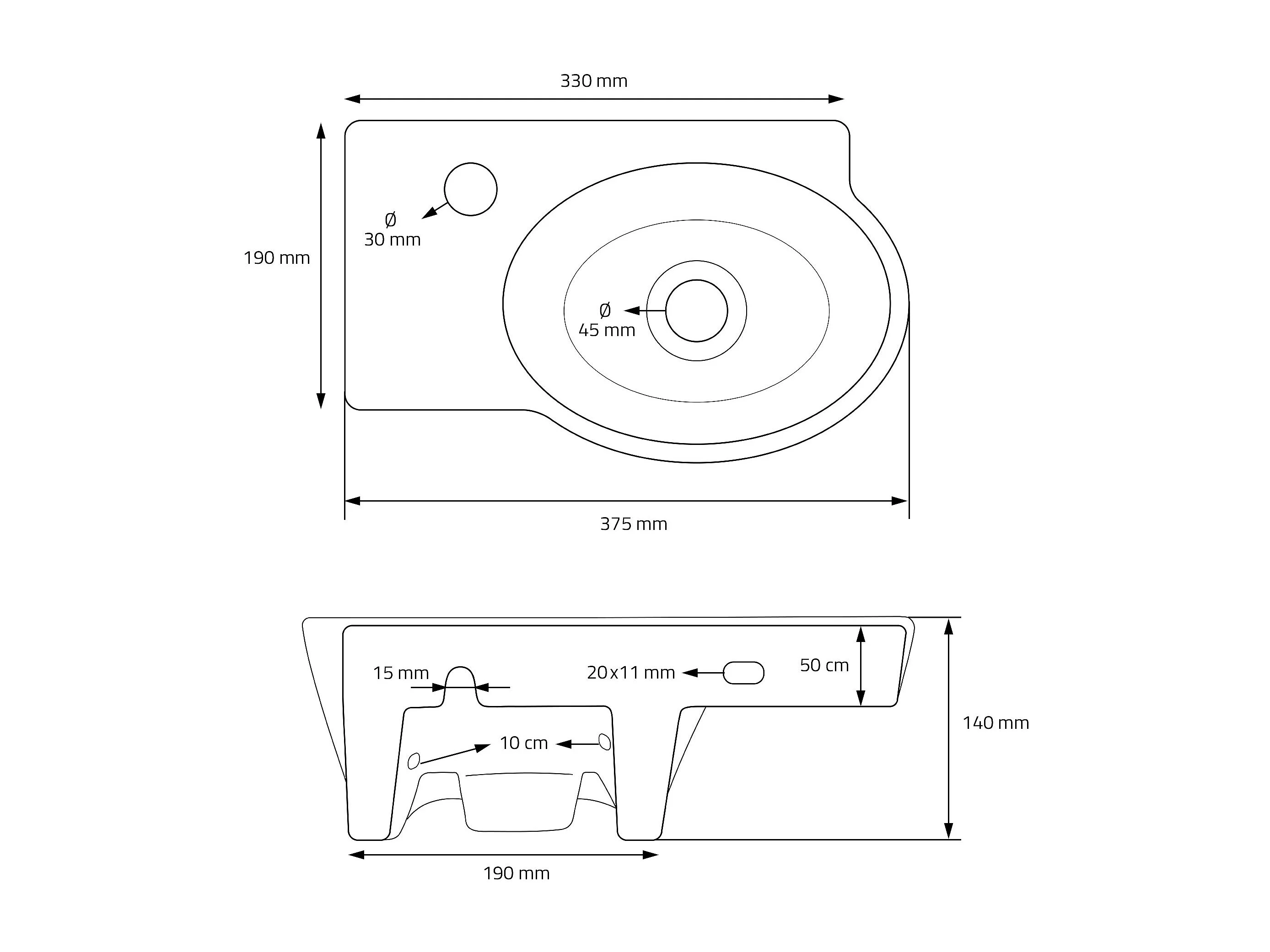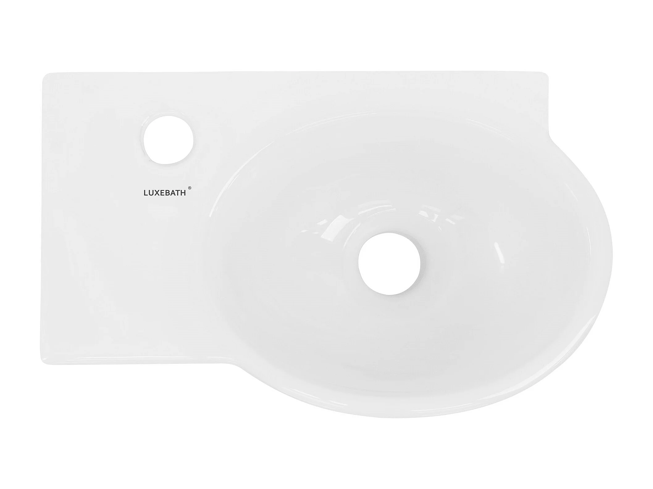 Lavabo ovalado angular cerámico con agujero para grifo en izquierda 37,5x19x14cm