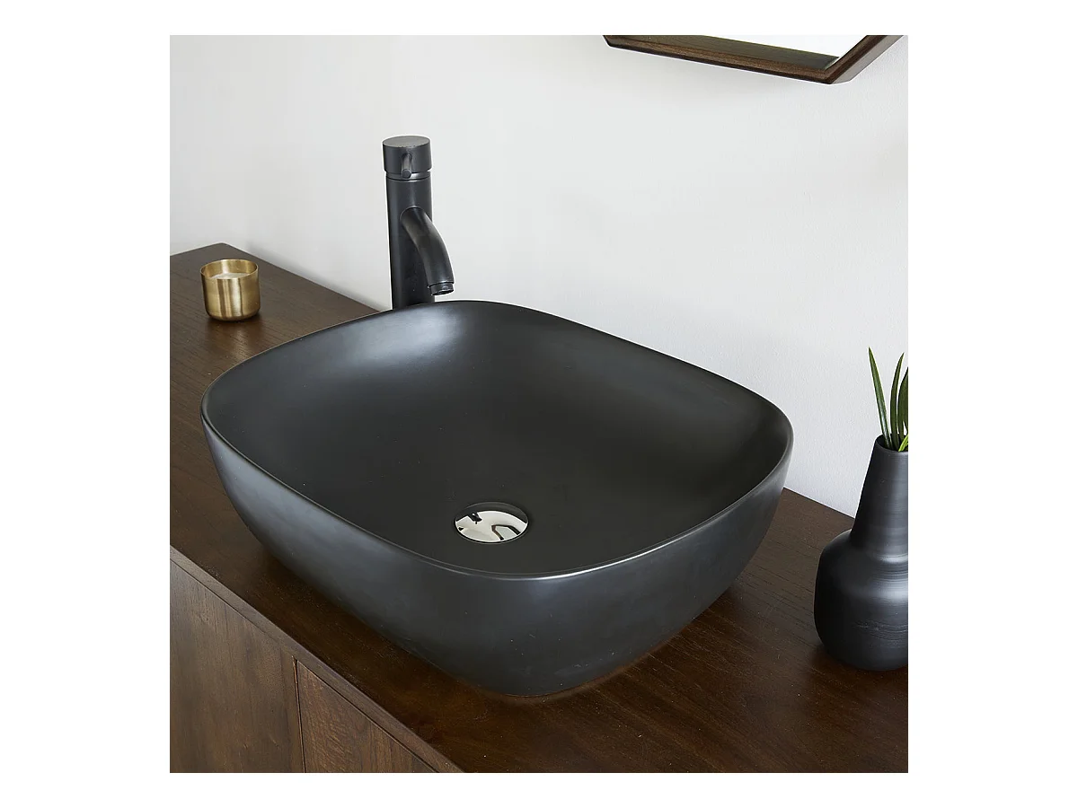 Lavabo negro encimera cerámica juego de desagüe sin rebosadero 505x385x140 mm