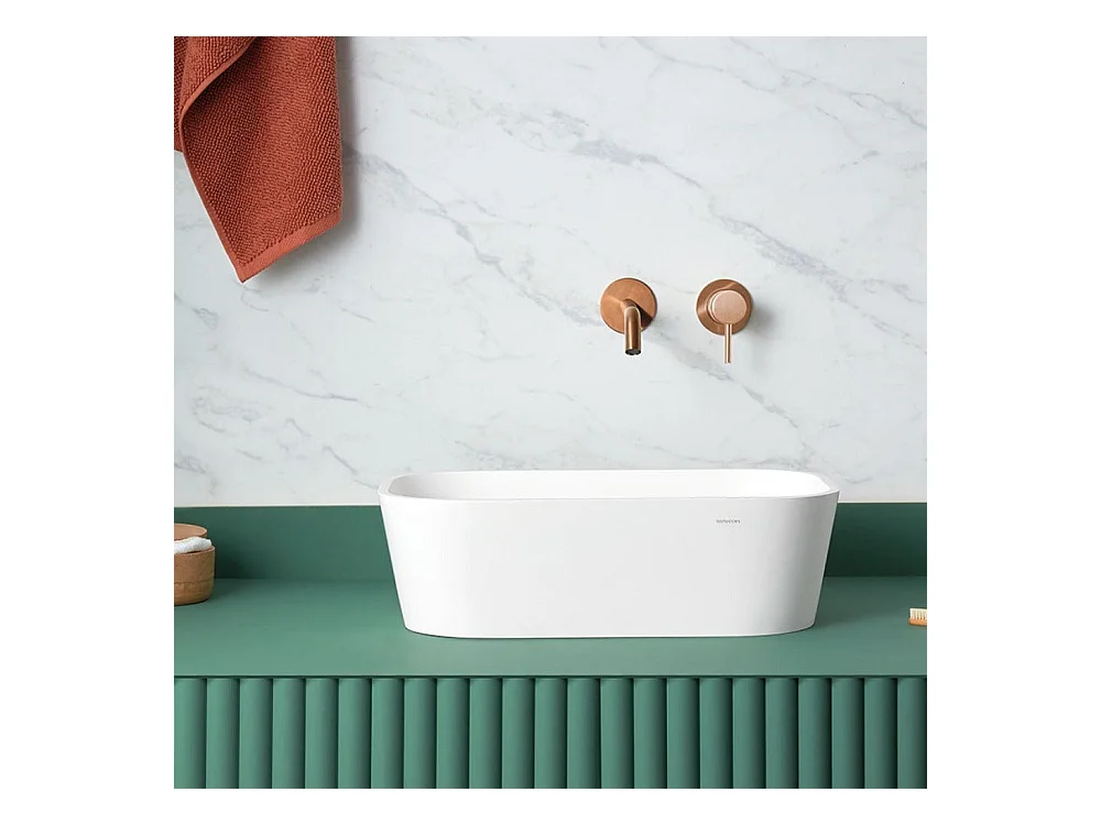 Lavabo blanco mate sobre encimera ovalado PALIO de mármol cultivado