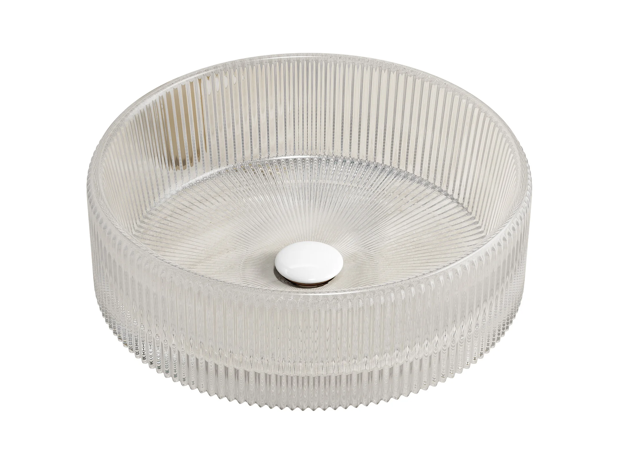 Lavabo redondo de cristal transparente, diseño elegante sin grifo, vidrio templado (36x36x11,5cm)