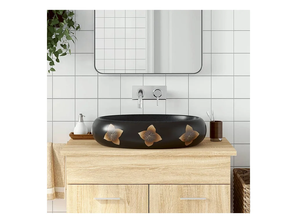 Lavabo sobre encimera ovalado cerámica negro y azul 59x40x15 cm ES66350