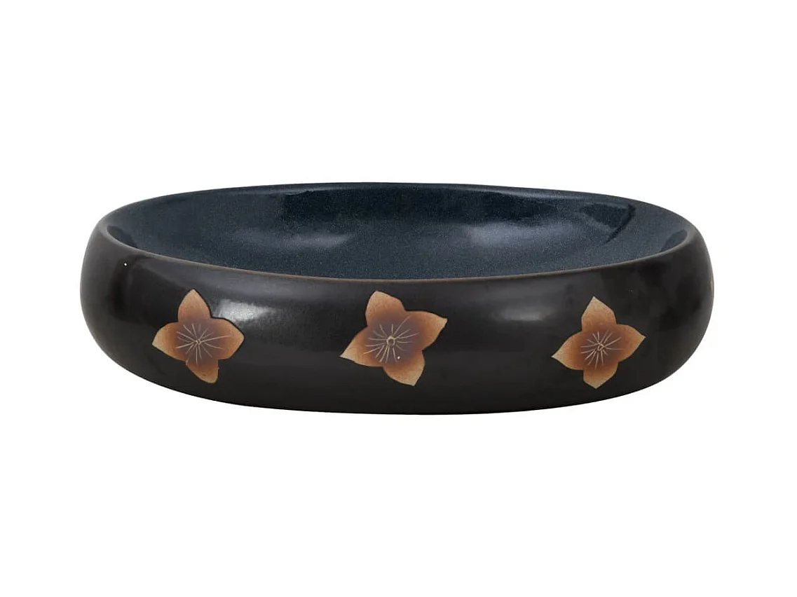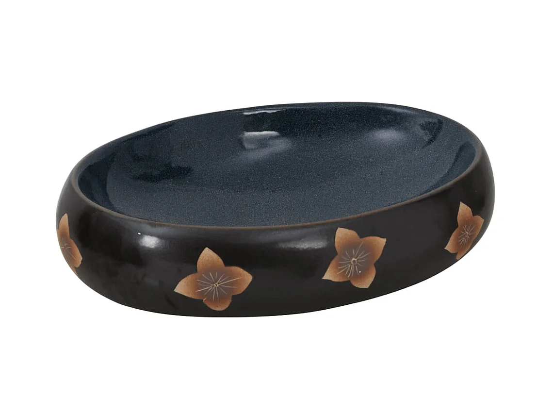 Lavabo sobre encimera ovalado cerámica negro y azul 47x33x13 cm ES582341