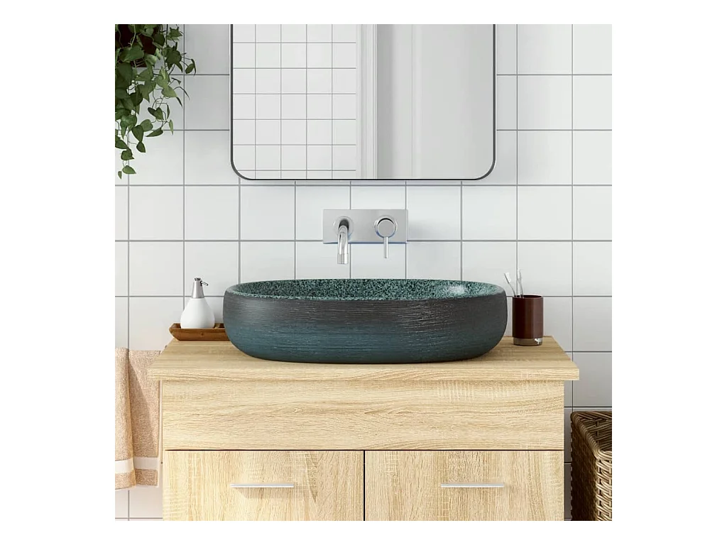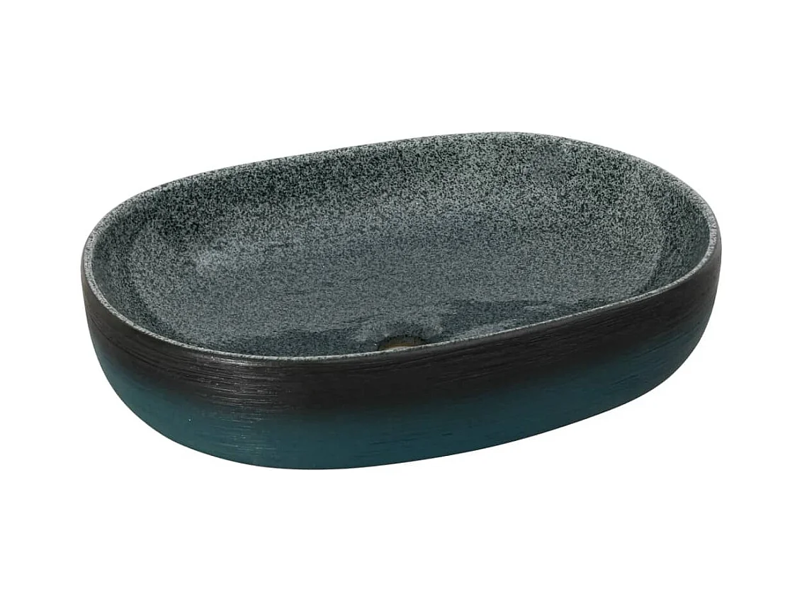 Fregadero sobre encimera ovalado verde y marrón 59x40x15 cm cerámico