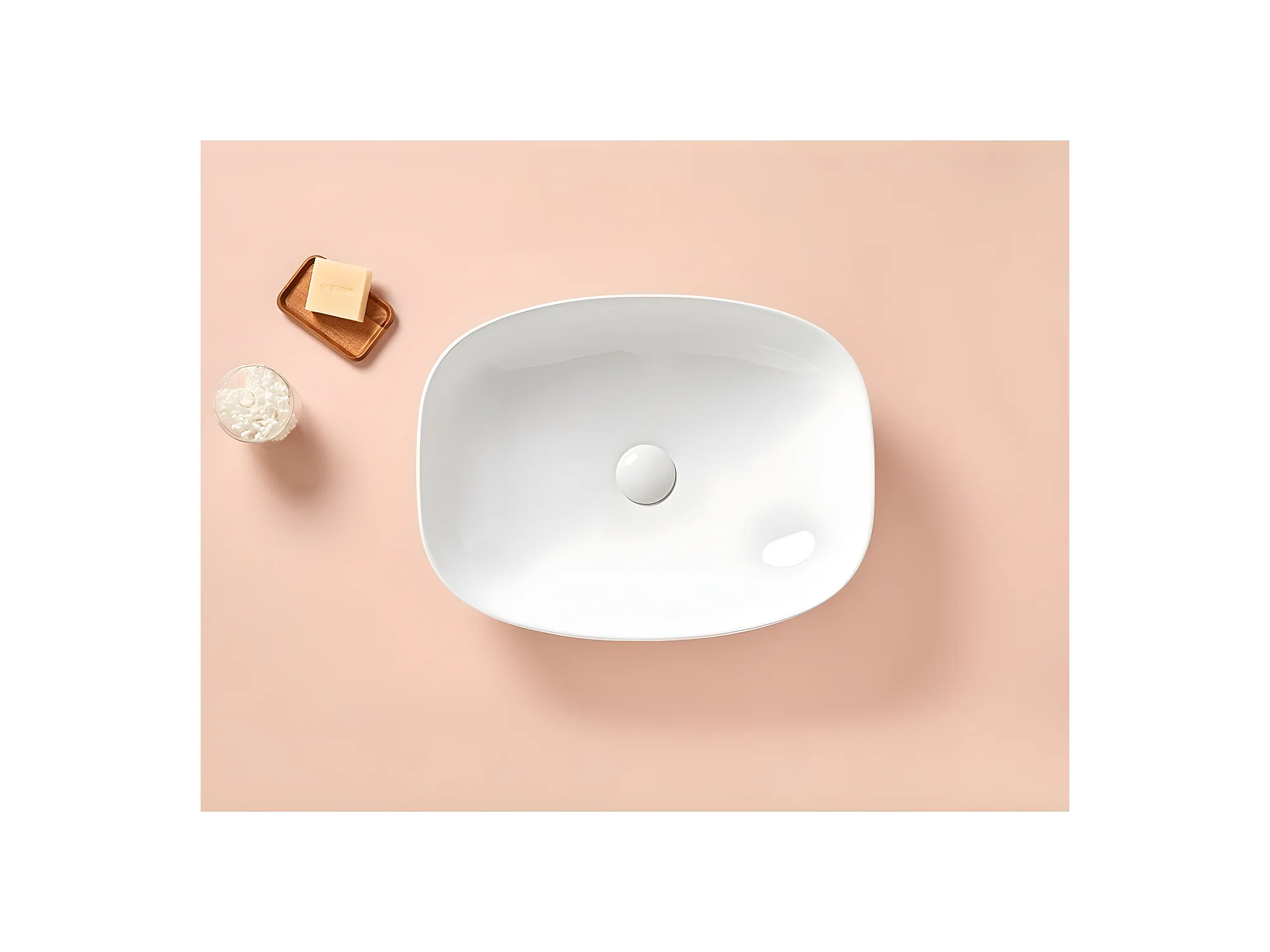 Lavabo blanco brillante sobre encimera cerámico LECCE 48 x 38 cm