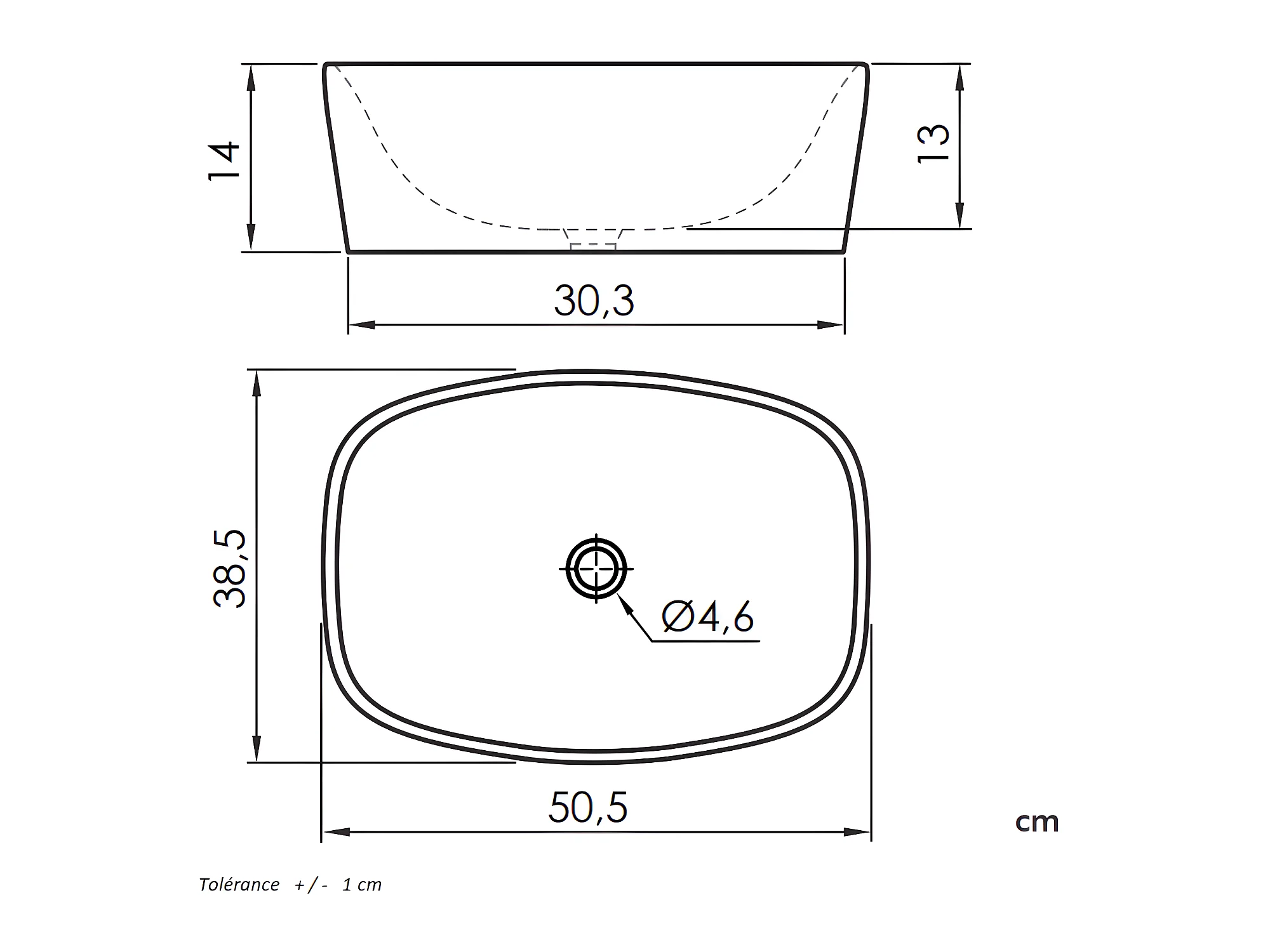 Lavabo sobre encimera en cerámica VERONA 55 x 35 cm