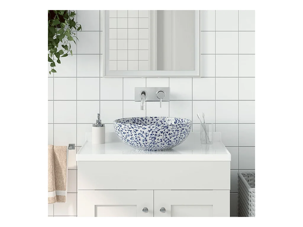 Lavabo sobre encimera redondo blanco y azul Φ41x14 cm de cerámica