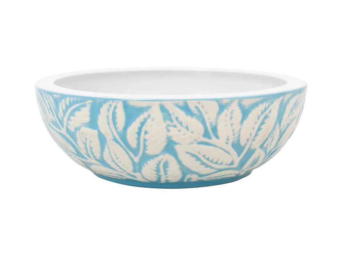 Lavabo sobre encimera redondo cerámica blanco y azul Φ41x14 cm ES66357