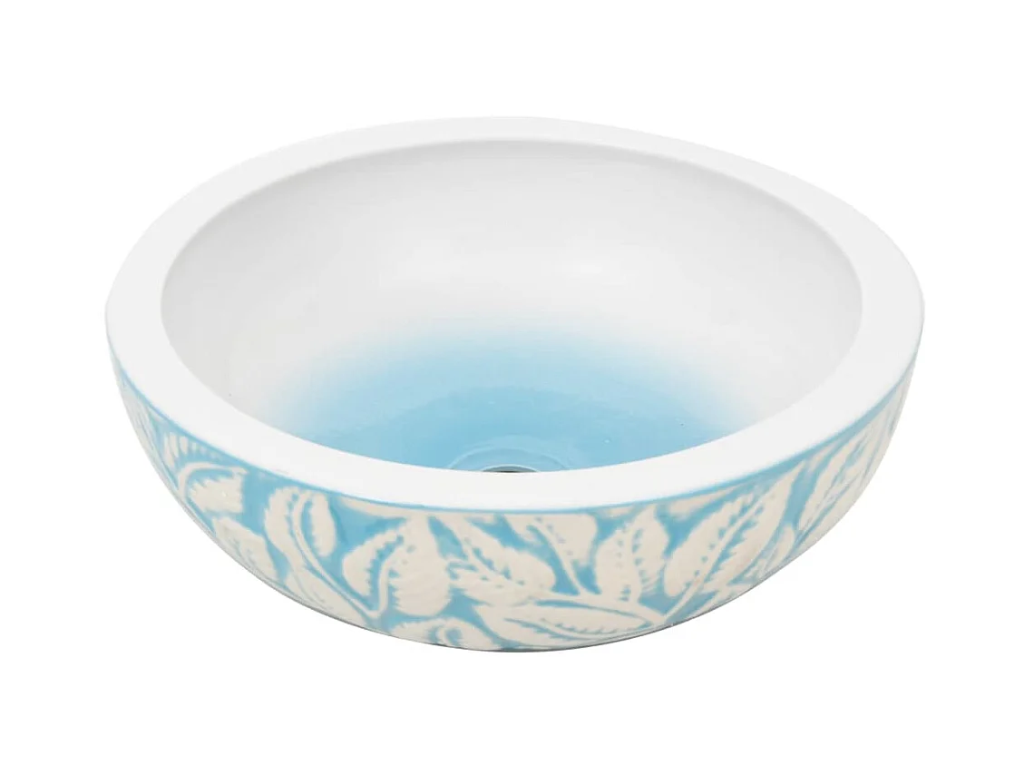 Lavabo sobre encimera redondo cerámica blanco y azul Φ41x14 cm ES849653