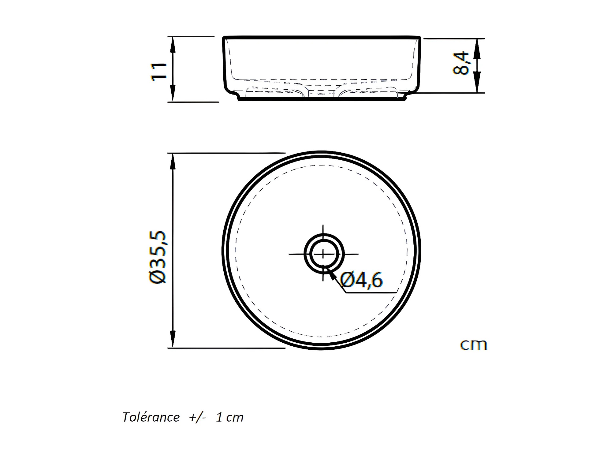 Lavabo sobre encimera redondo en cerámica MARSALA blanco Ø35.5 cm Blanco brillante