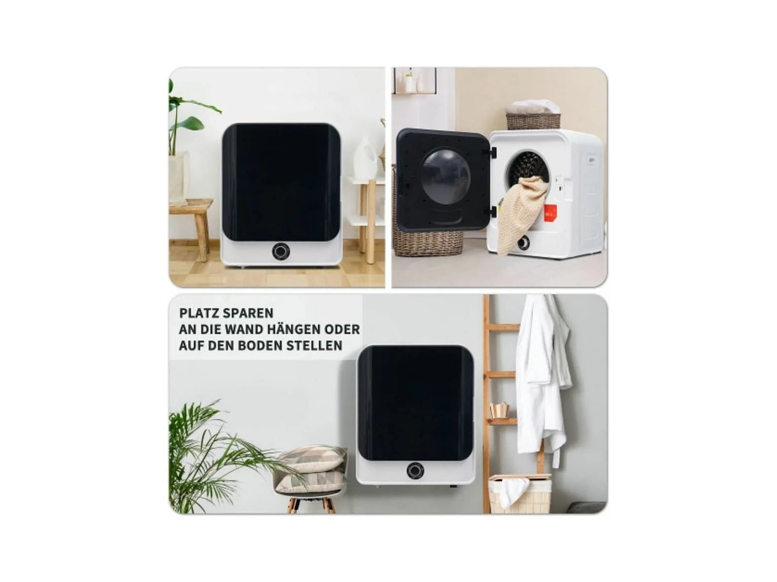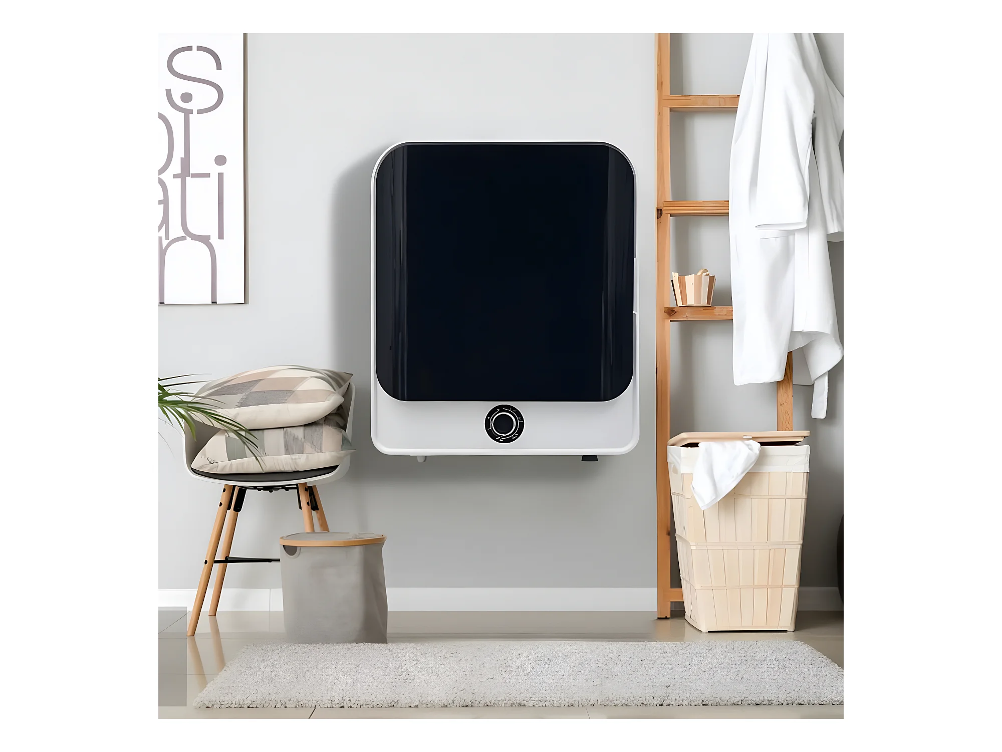 Secadora con ventilación de 3 kg, hasta 4,5 kg, 830 W, calentamiento PTC, 5 programas, protección contra sobrecalentamiento, montaje en pared