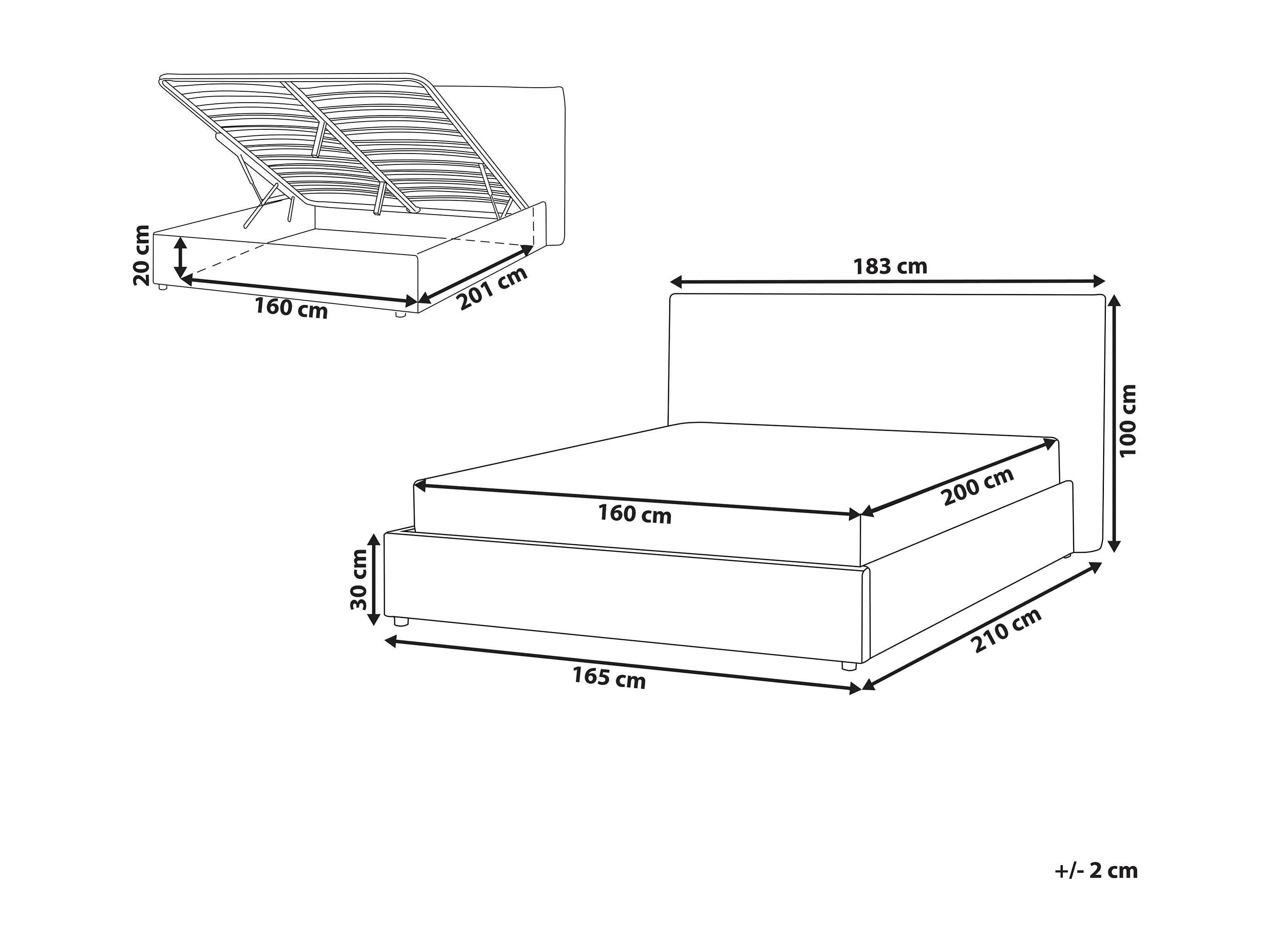Cama con almacenaje Terciopelo LAVAUR 160 x 200 cm Blanco crema