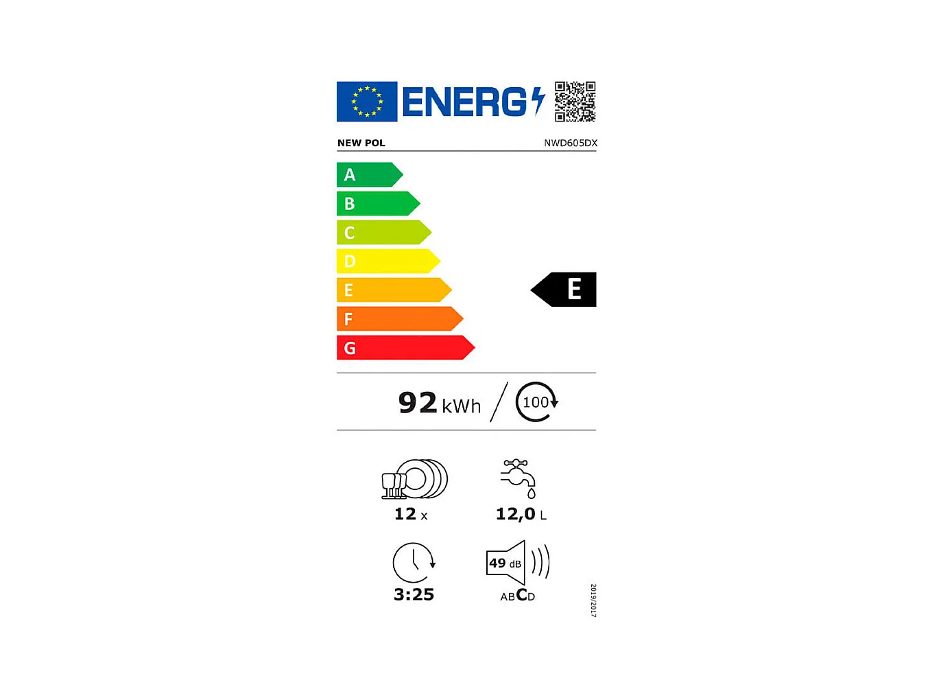 Lavavajillas New Pol NWD605DX 12 cubiertos panel elecrónico E inox 59,8 cm