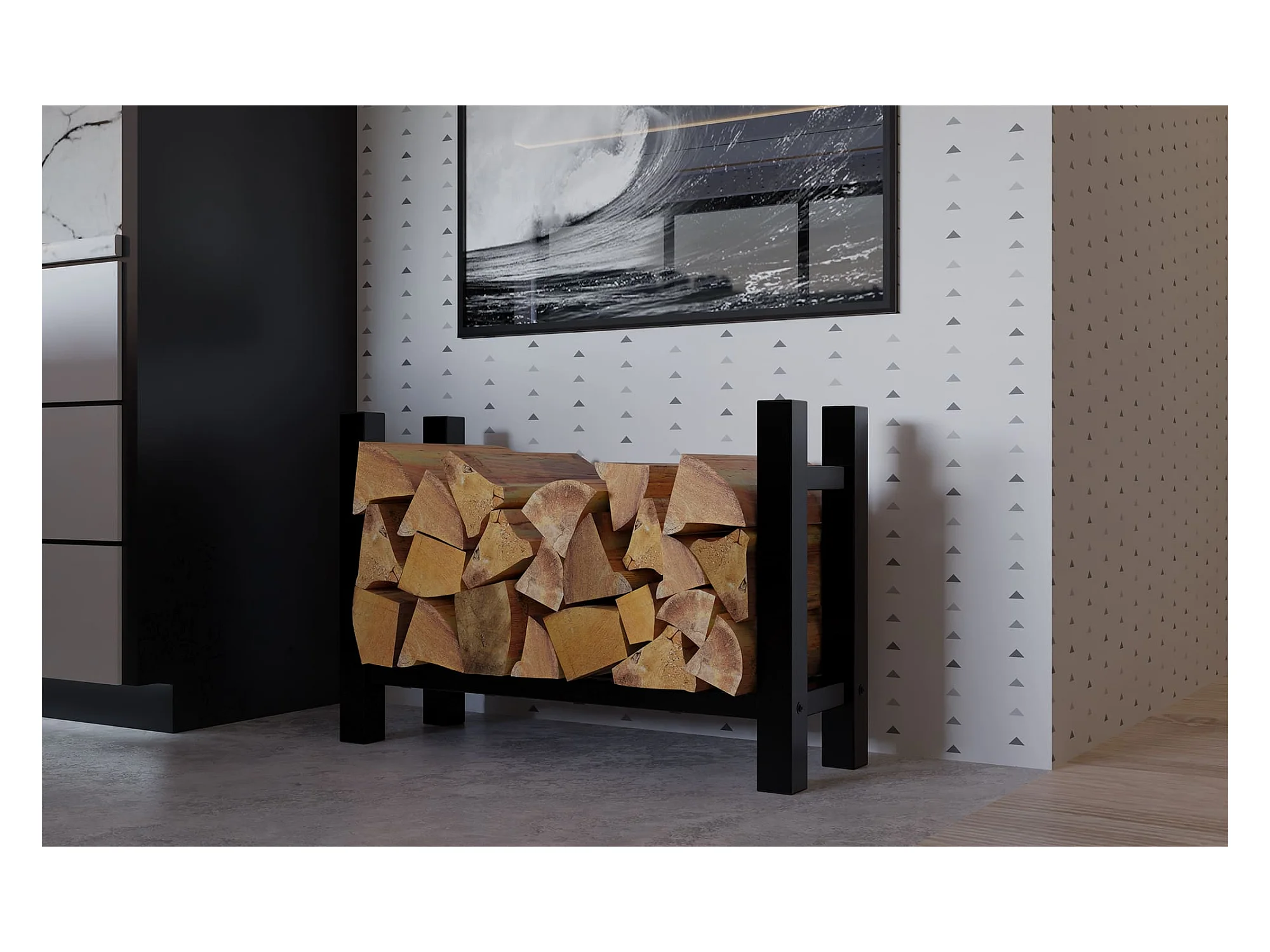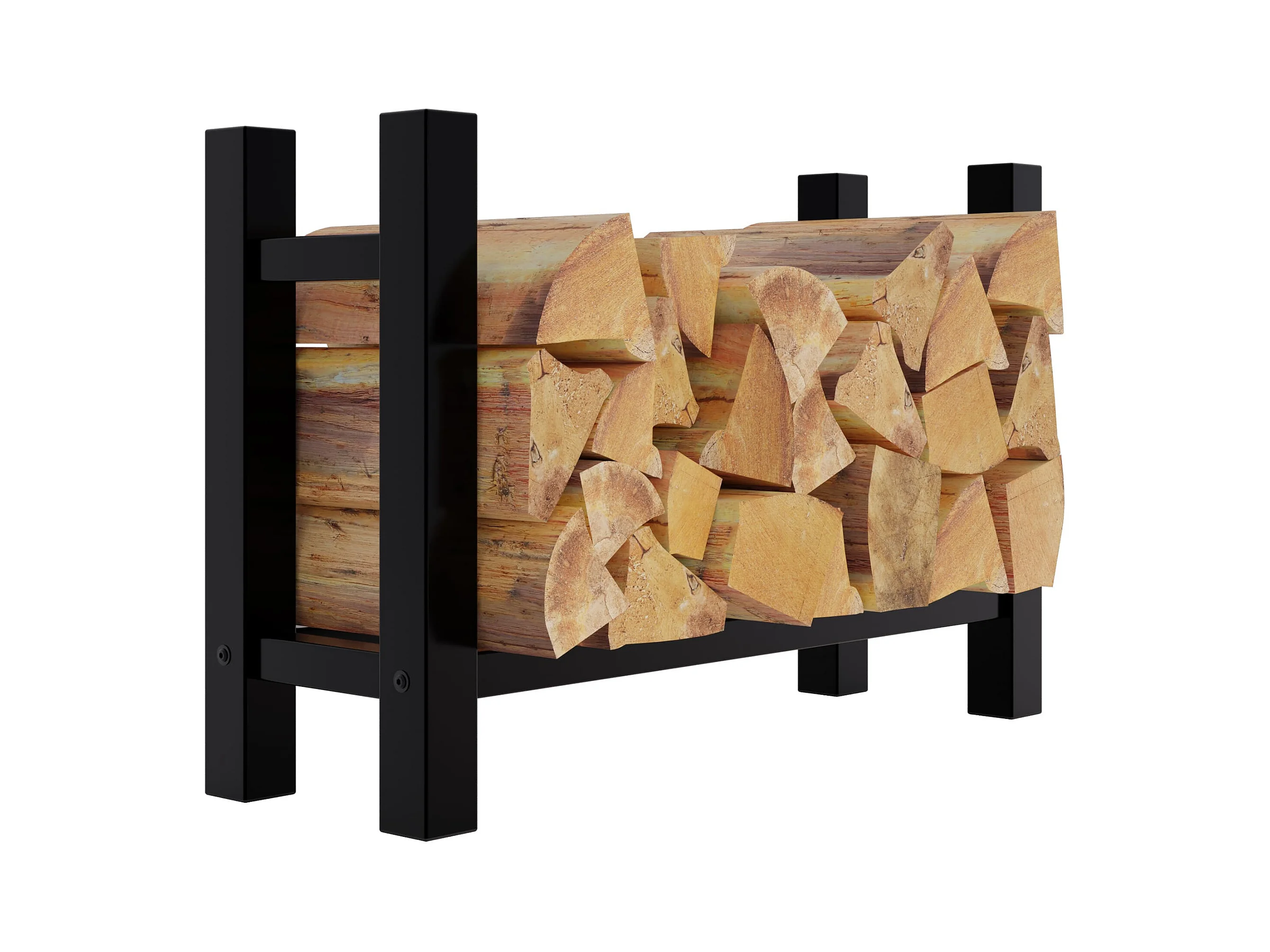 Leñero soportes para leña almacenamiento de metal negro cuadrada 30x80x60 cm M10_000574