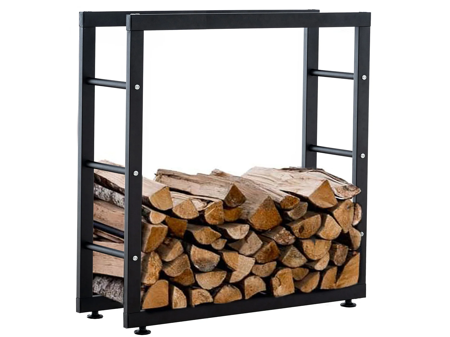 Leñero soportes para leña almacenamiento de metal negro negro 25x100x100 cm metal M10_000550