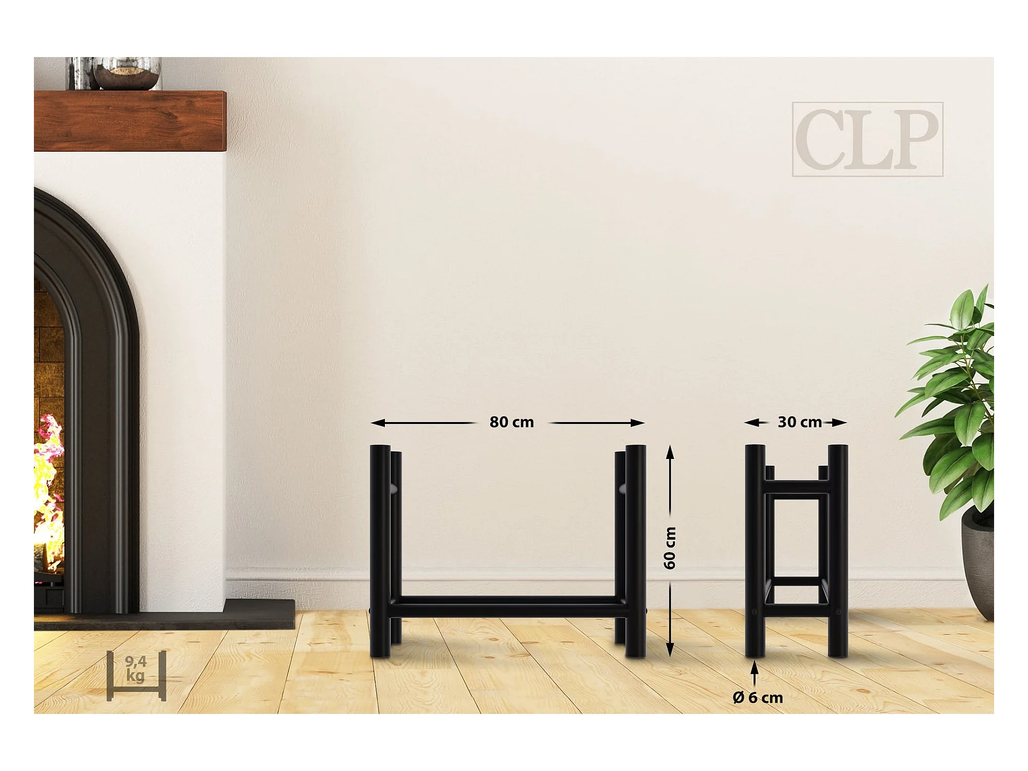 Leñero soportes para leña almacenamiento de metal negro redonda 30x80x60 cm M10_000579