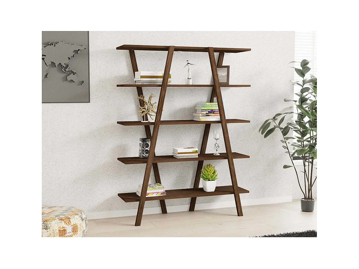 Librería escandinava de nogal – 120 x 150 x 25 cm – nogal – tablero de partículas revestido de melamina