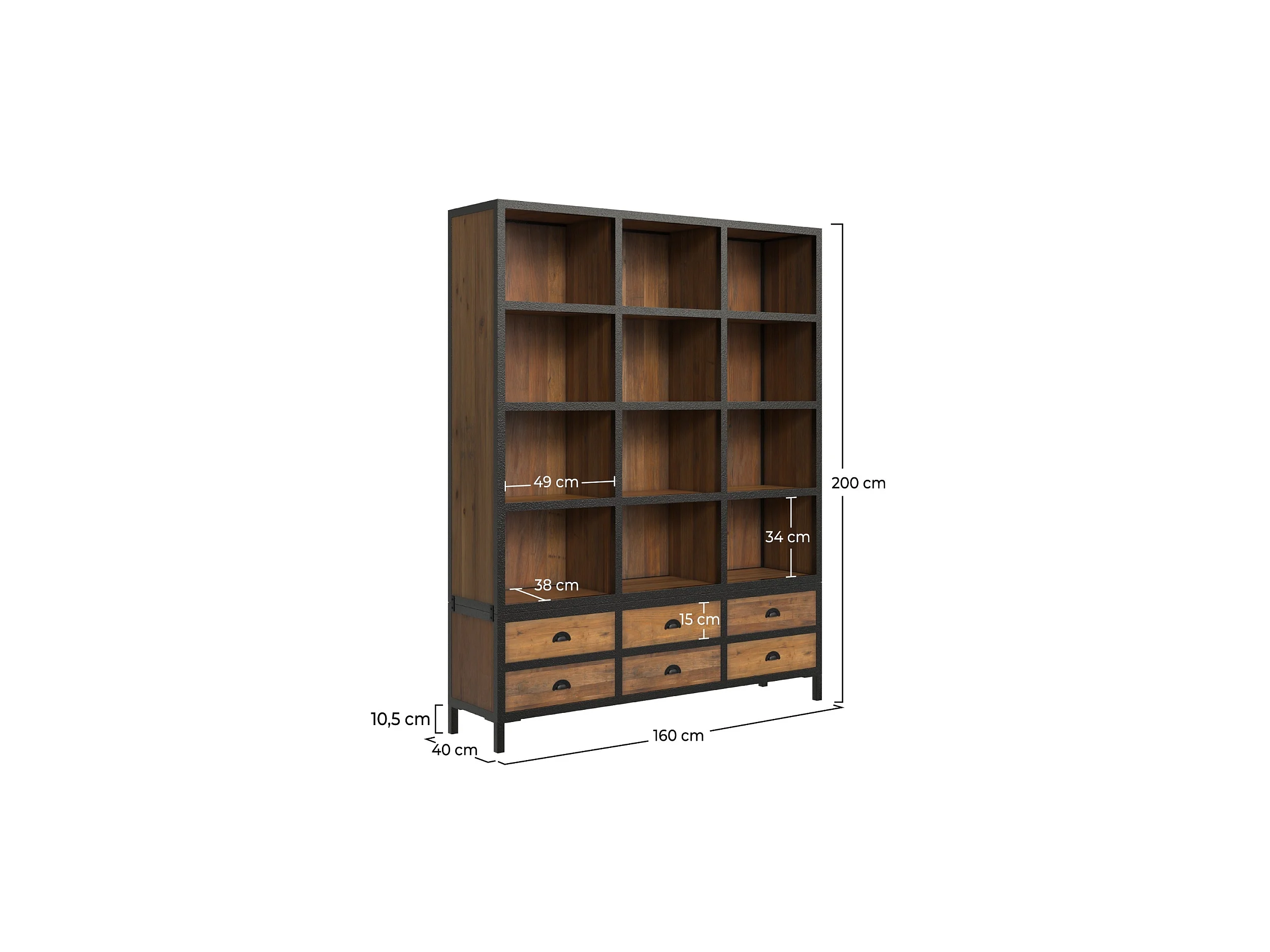 Librería 6 cajones 12 nichos en metal y madera de cedro - Shelby