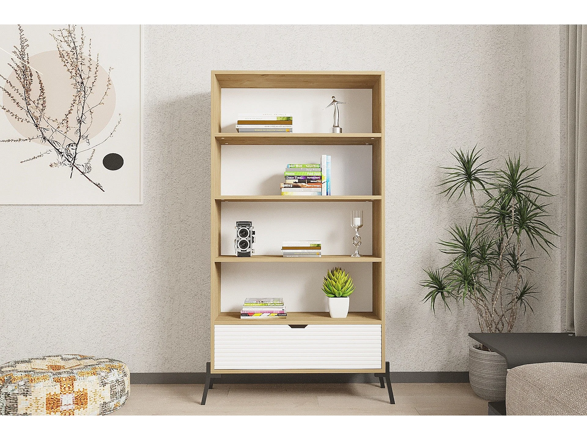Estantería Kailua 1077, Abierto, Metal|Aglomerado laminado, 180x30x34cm, Roble|Blanco