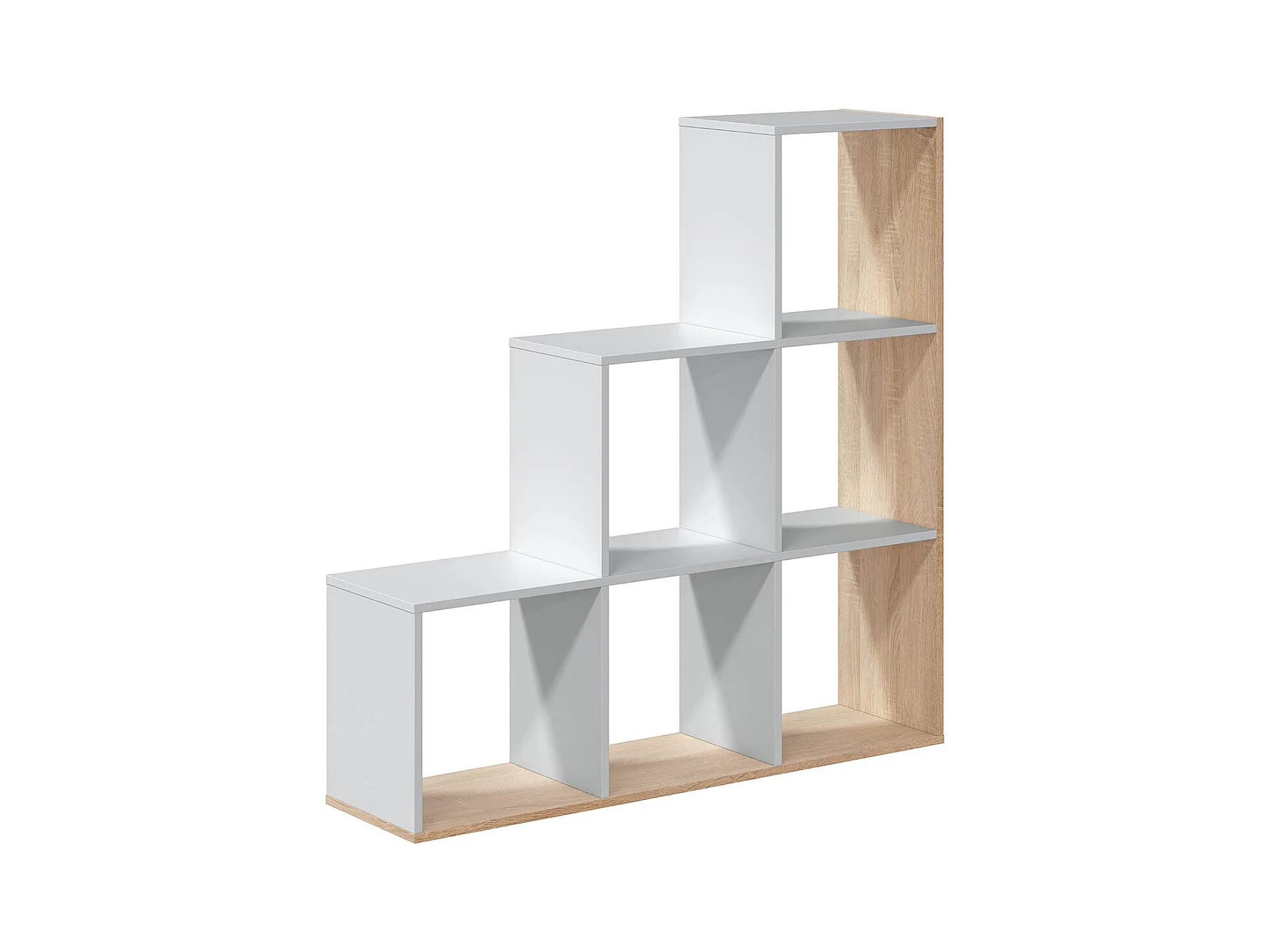Librería Biblioteca Escalera cúbica Color Roble candiene/Blanco ártico - Altura 110 x Longitud 108 x Profundidad 28 cm
