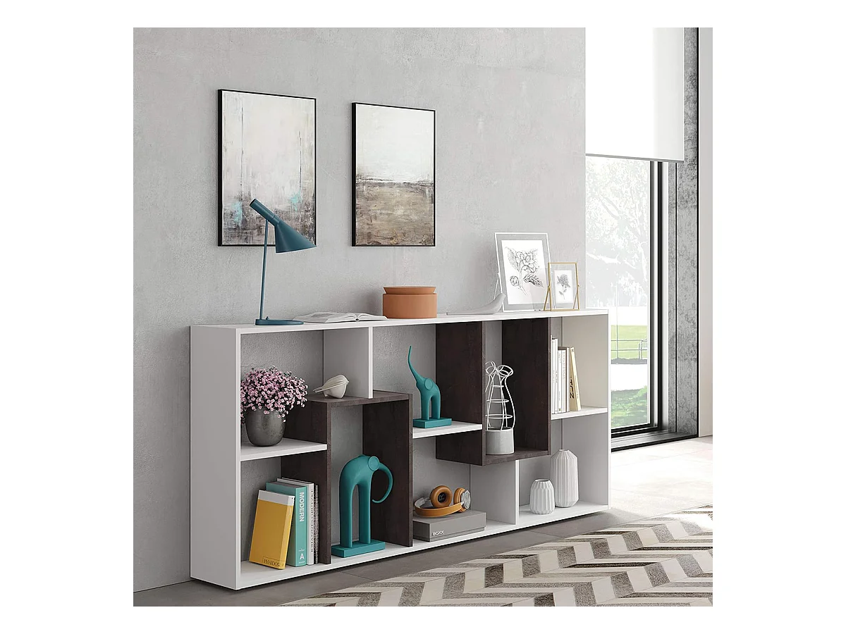 Librería Biblioteca Multiposiciones Horizontal y Vertical Blanco ártico/Efecto Industrial Envejecido - 180 x 80 x 25 cm