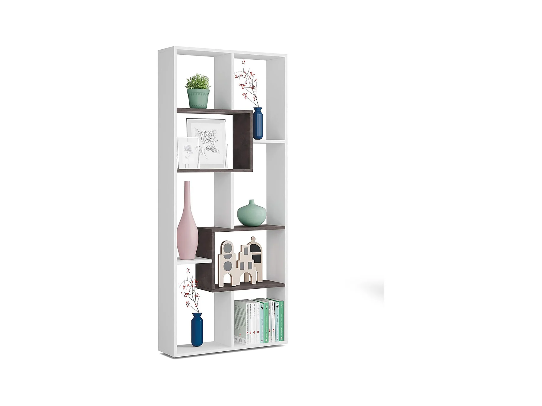 Estantería orgánica de efecto madera con 8 compartimentos blanco