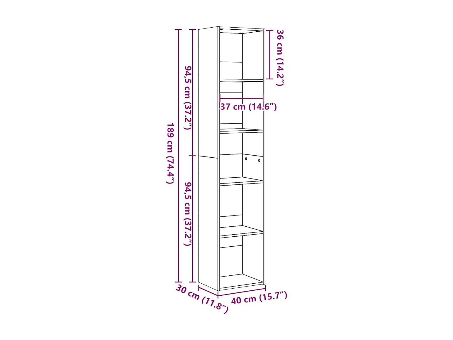 Librería blanca brillante 40x30x189 cm madera de ingeniería
