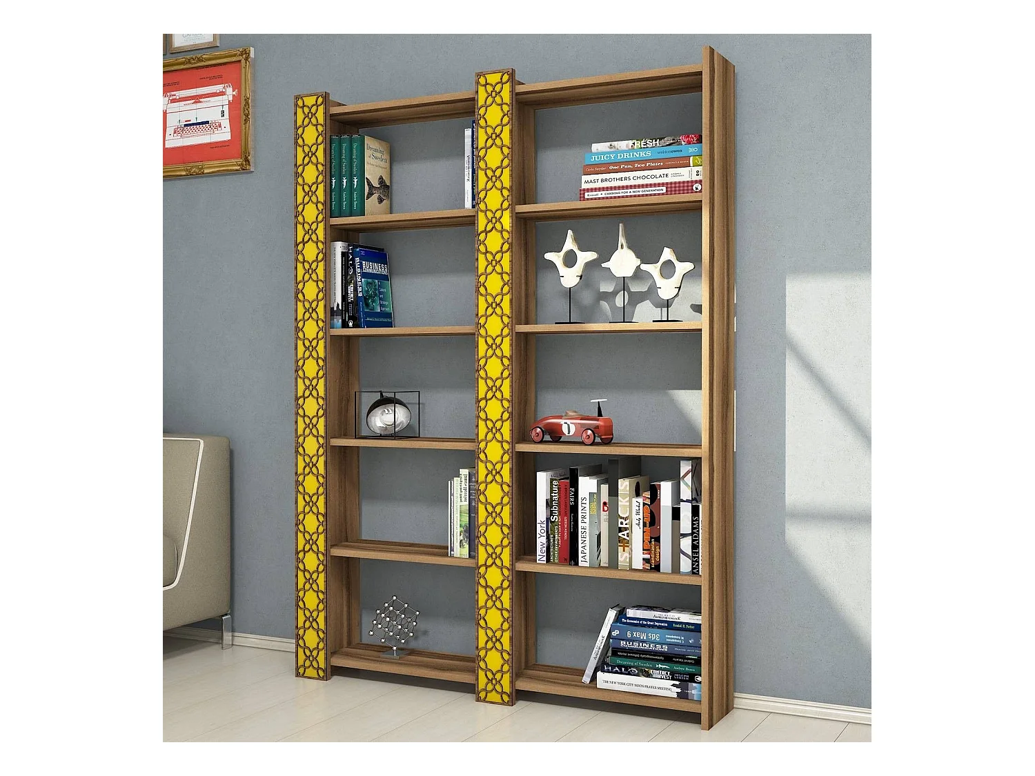 Librería Bohemia – 124,6 x 170 x 24,2 cm – nogal y amarillo – melamina