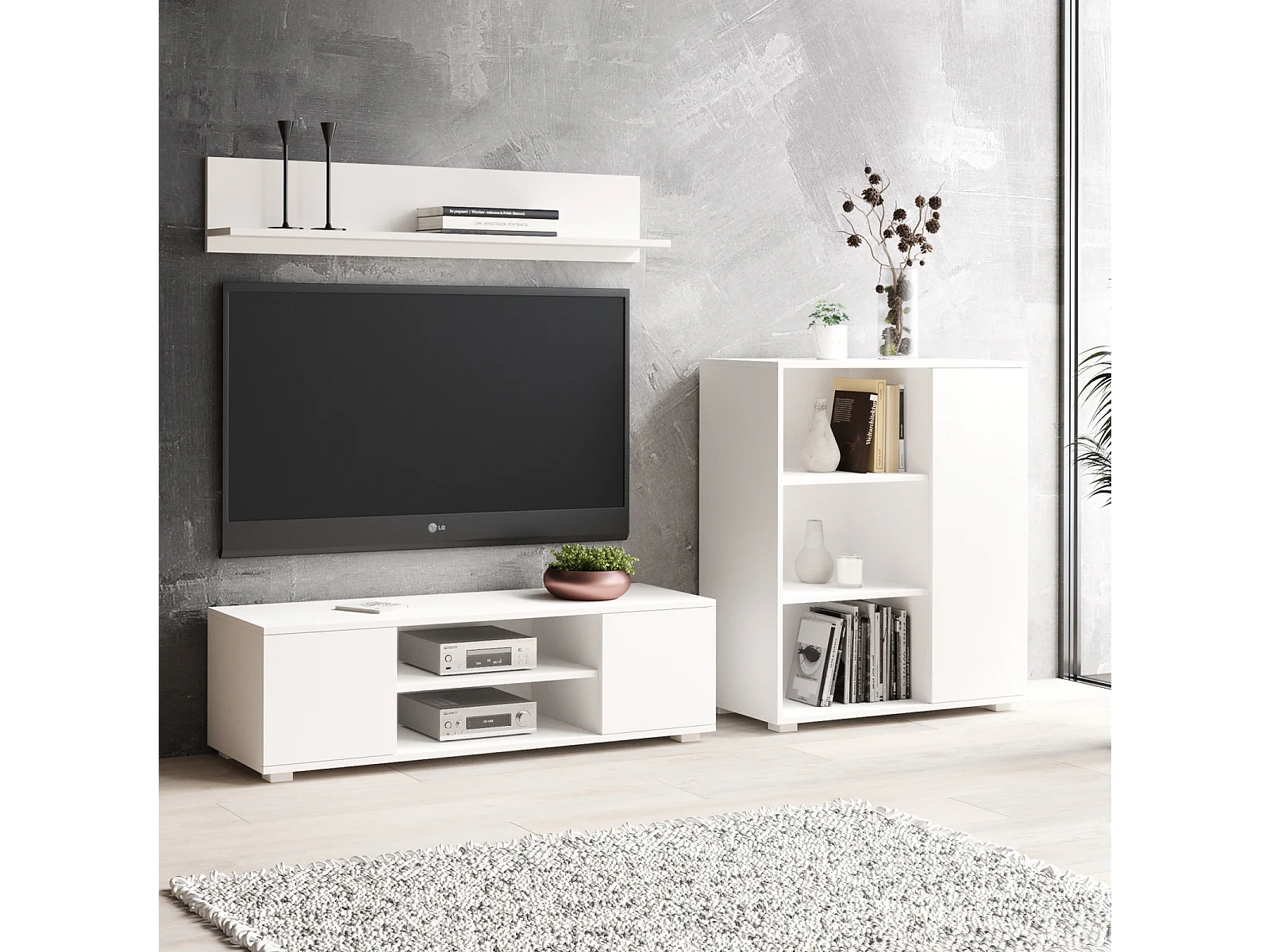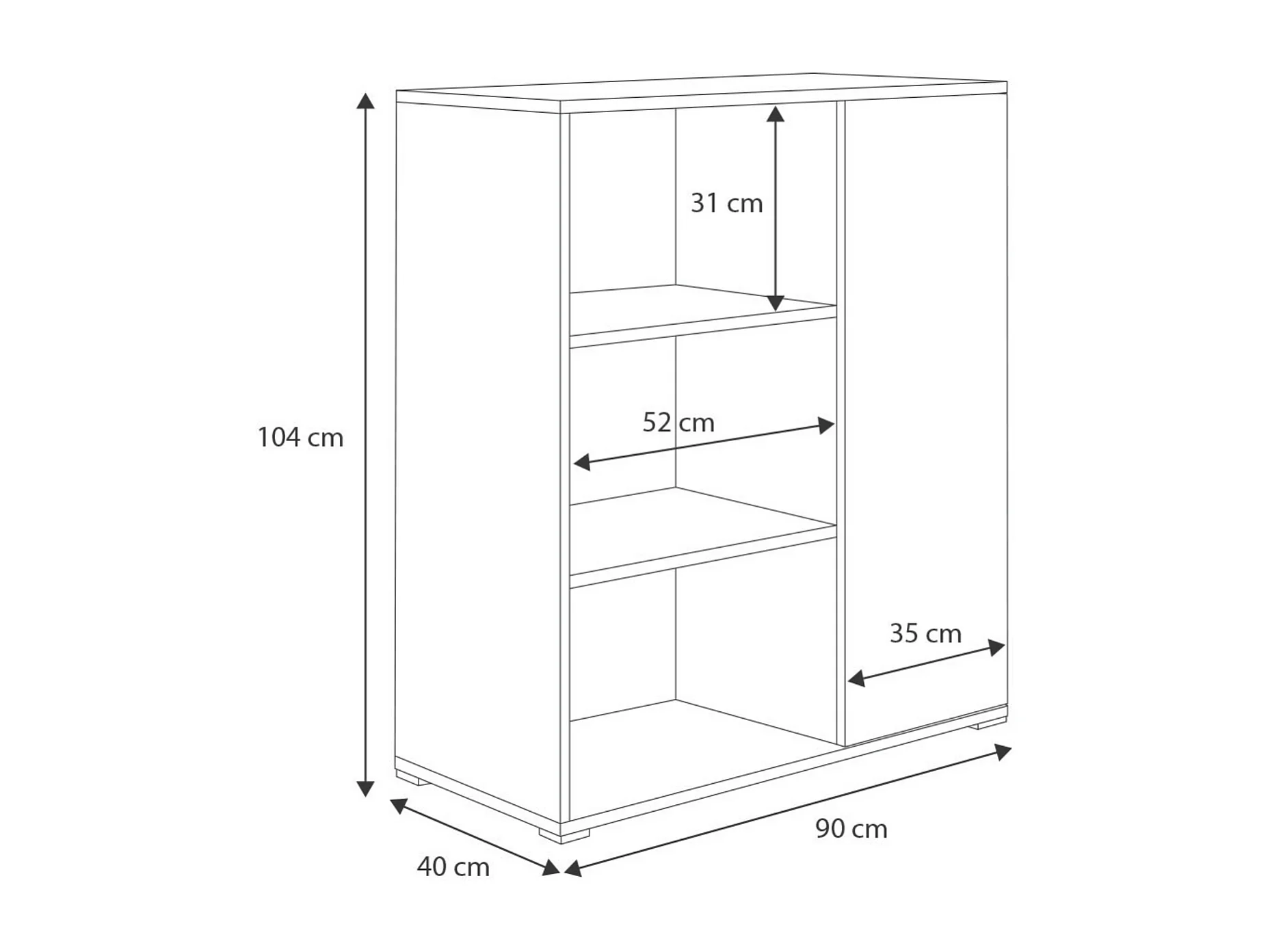 Librería Color Blanco 90x116x40 cm – Estilo Escandinavo con 3 Estantes, 1 Puerta y Patas de Madera