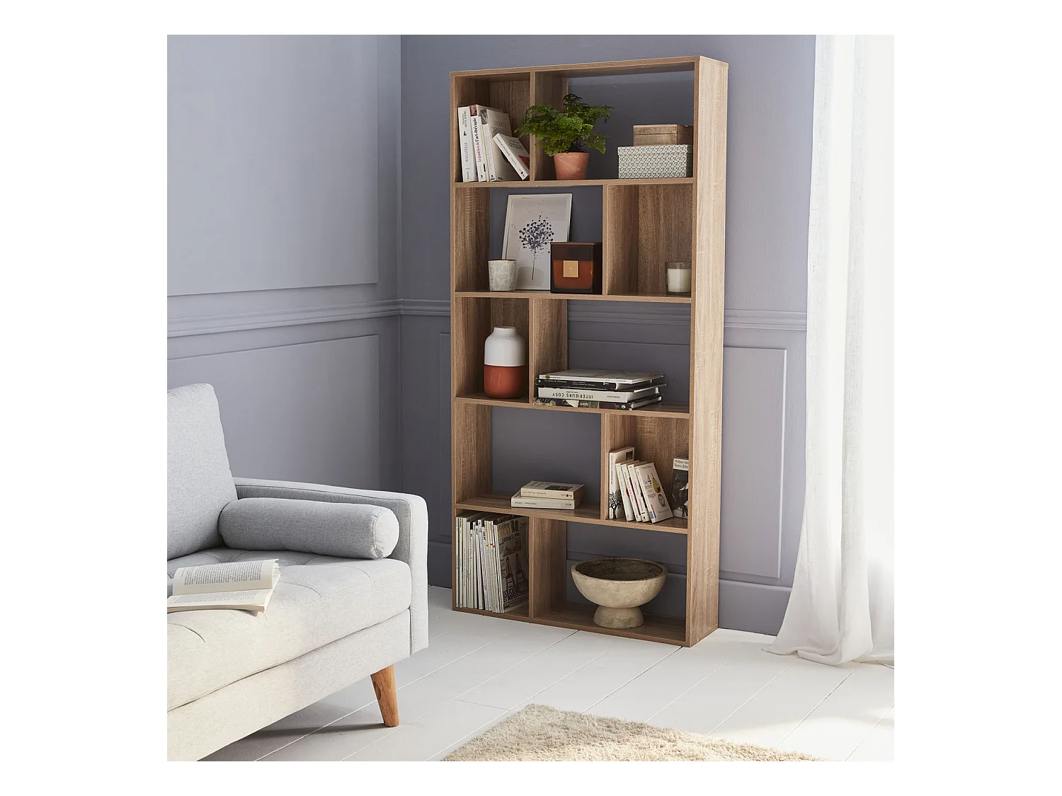 Librería con 5 baldas y 10 compartimentos natural