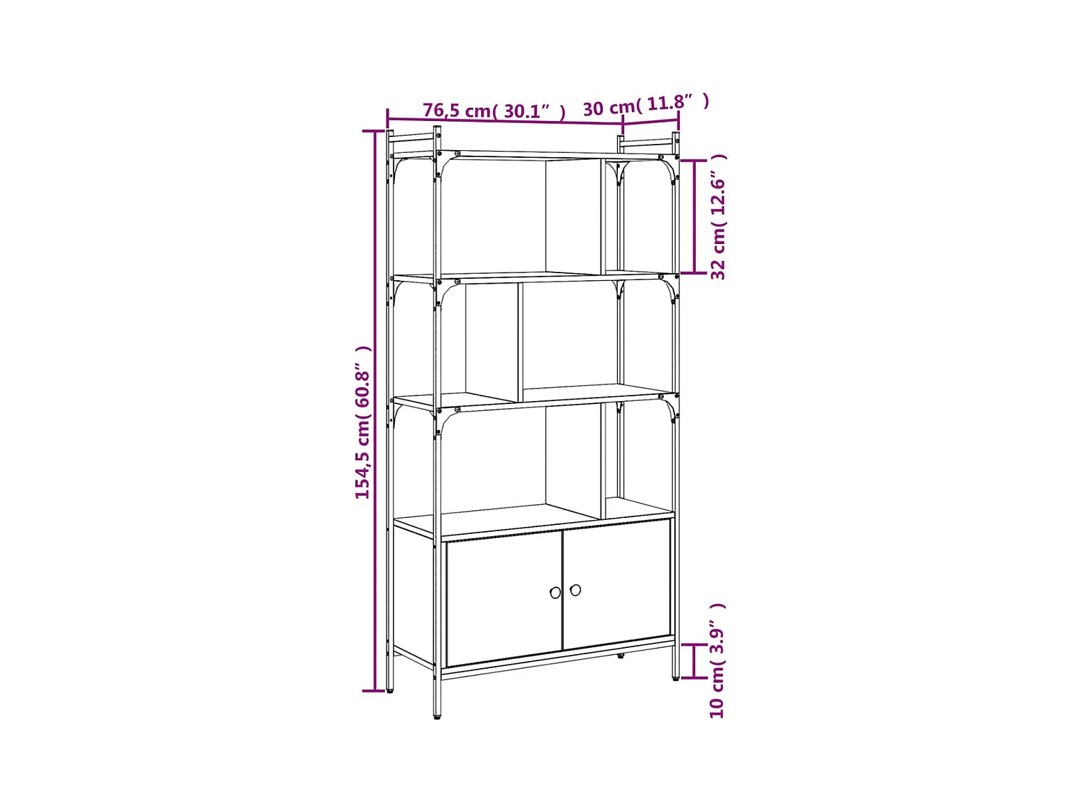 Librería con puertas de roble ahumado 76,5x30x154,5 cm