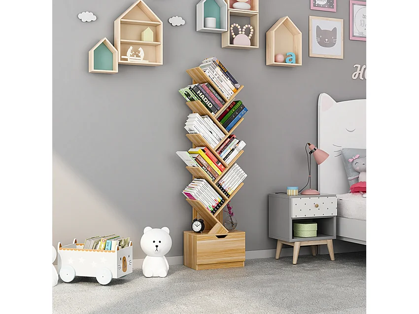 Librería de 10 estantes diseño moderno para salón y oficina Treebook 150 - Natural